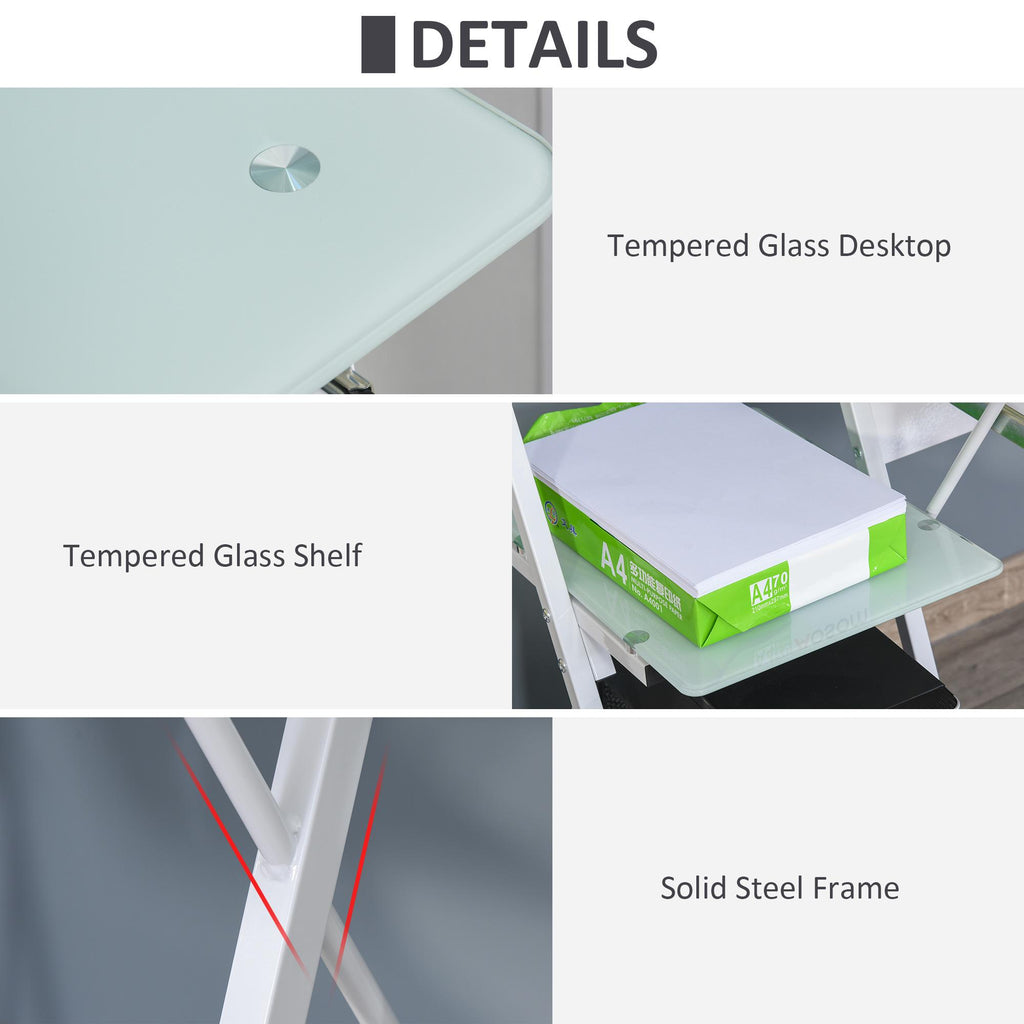 Bureau pour PC 116,5x54,5x100 cm avec étagères et plateau en verre blanc