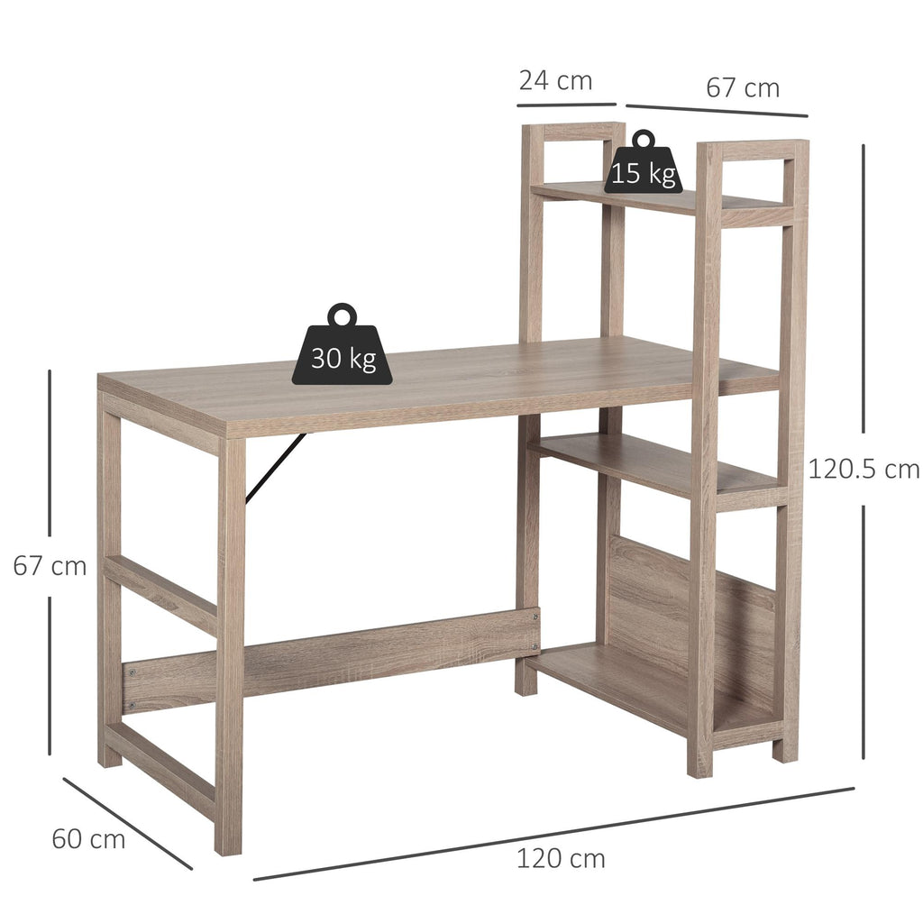 Bureau pour PC 120x67x120,5 cm avec bibliothèque en bois de chêne