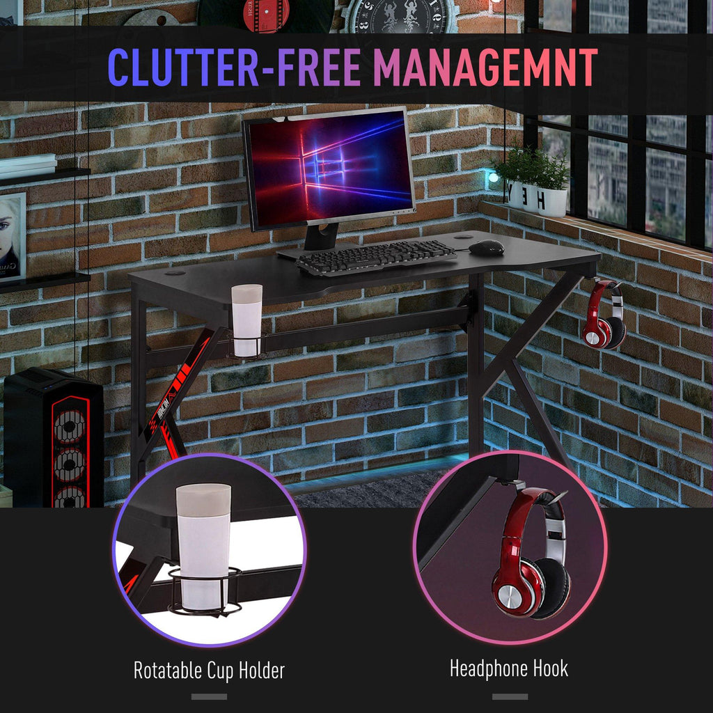 Bureau gaming 120x60x73 cm en MDF et métal noir