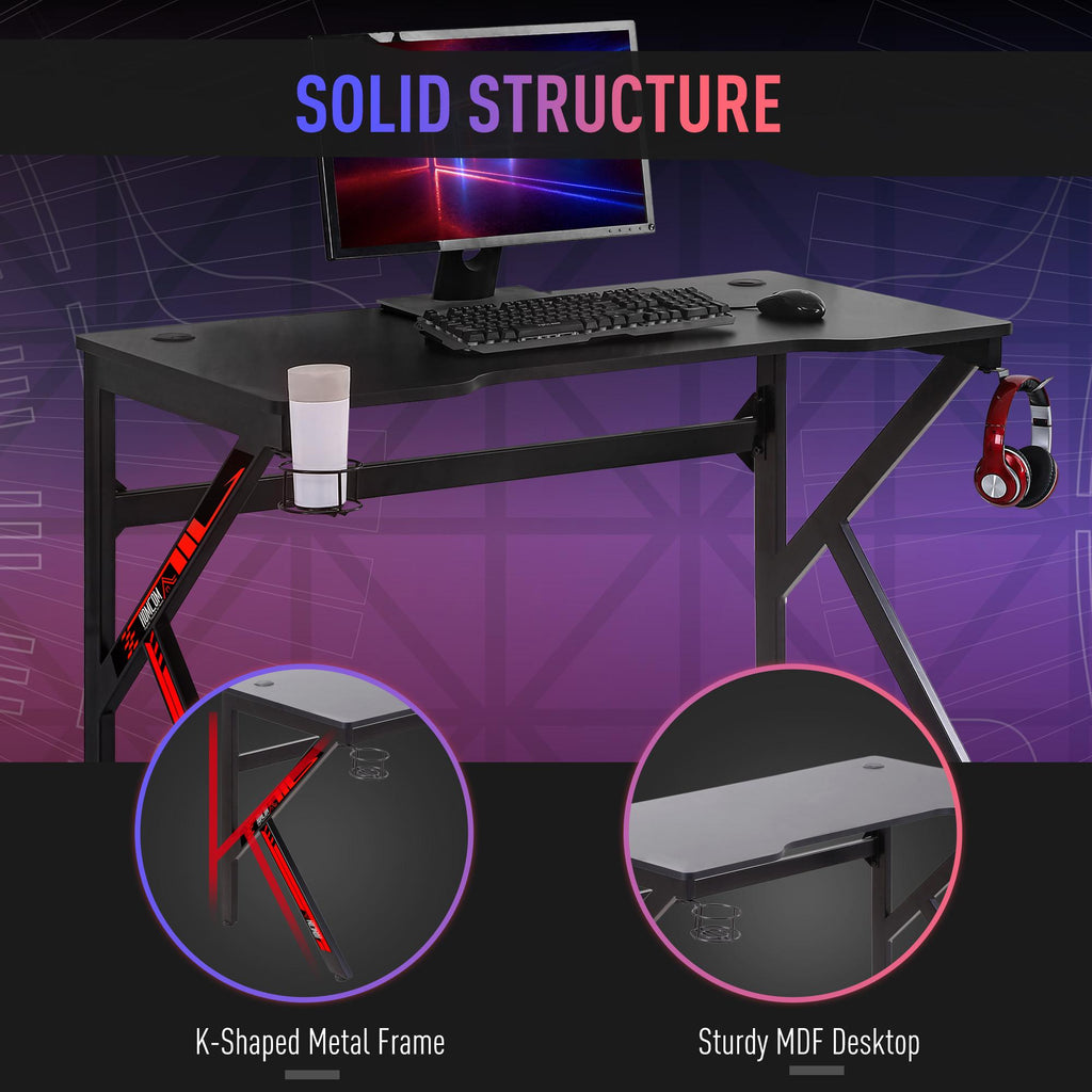 Bureau Gaming 120x60x73 cm en MDF et Métal Noir