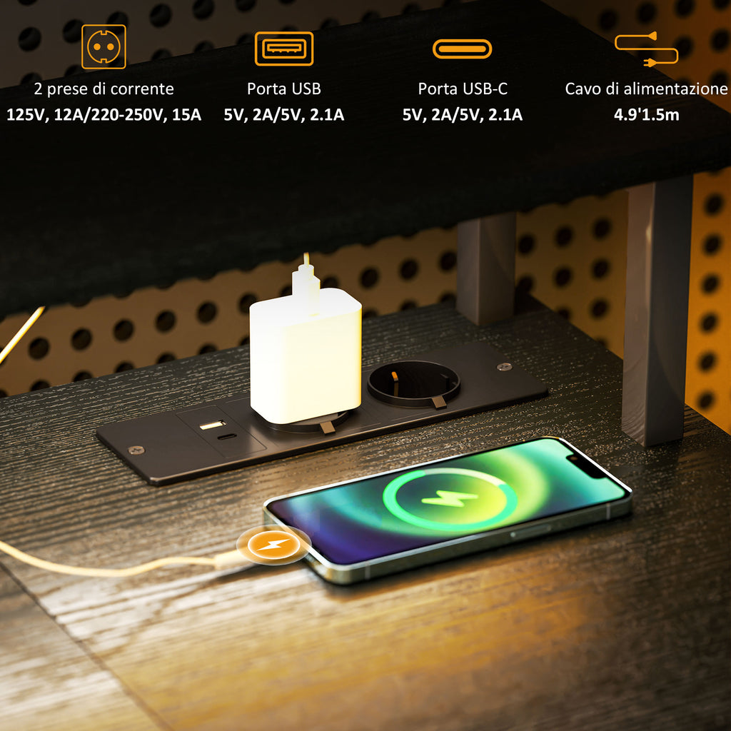 - STAZIONE DI RICARICA INTEGRATA: La scrivania per camera garantisce l'alimentazione continua di tutti i tuoi dispositivi grazie a due prese di corrente, una porta USB e una presa USB-C, elegantemente integrati nel piano di lavoro