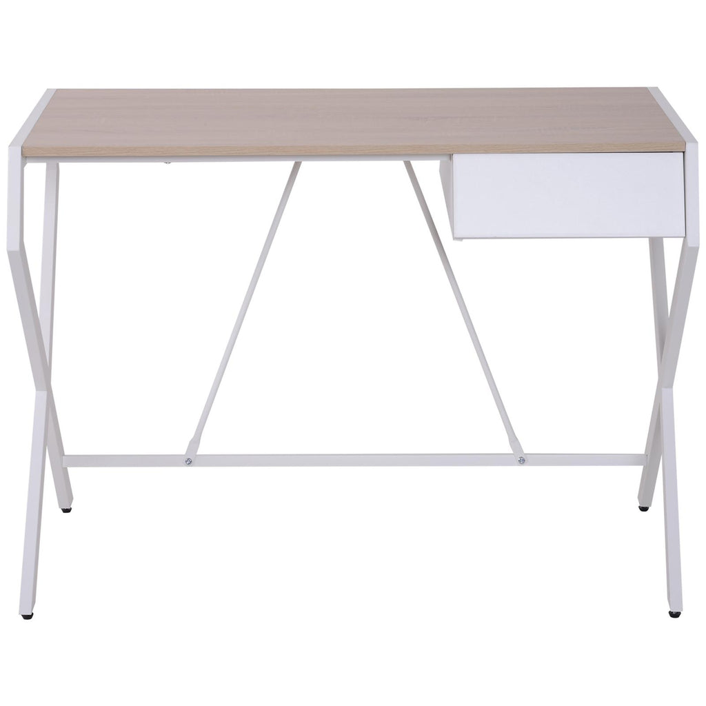 Bureau en acier, chêne et blanc 105x56x75 cm