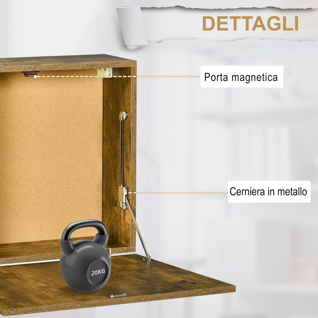 Bureau pliant avec étagères 60x20x50 cm en aggloméré marron et MDF