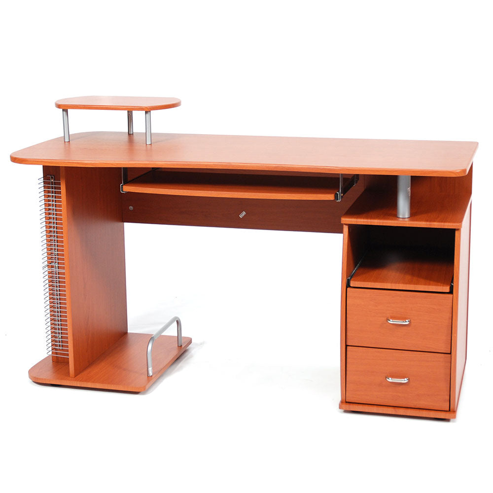 Bureau PC 140x60xH77cm en Bois avec Commode et Support Clavier Scanner Cerise