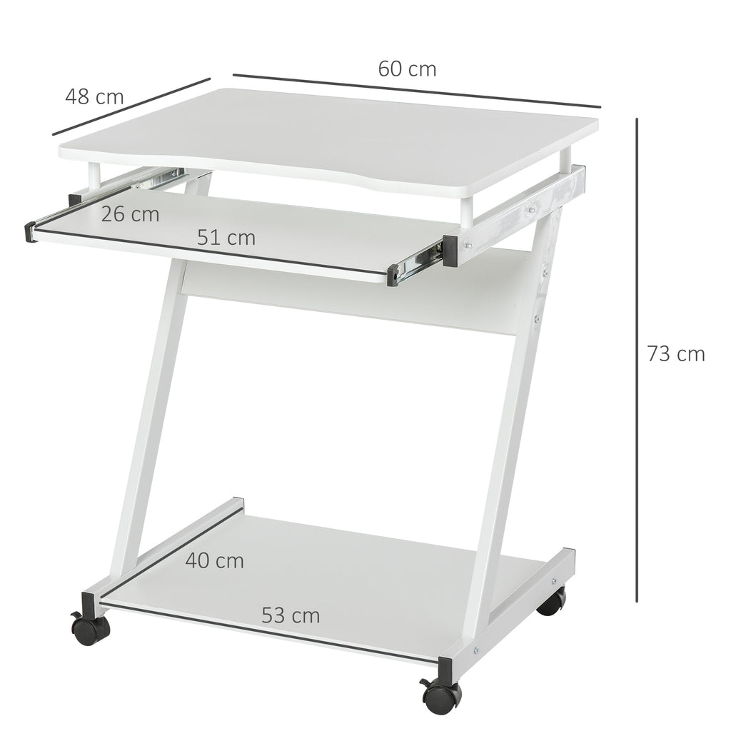 Bureau PC 60x48x73 cm avec roulettes blanches