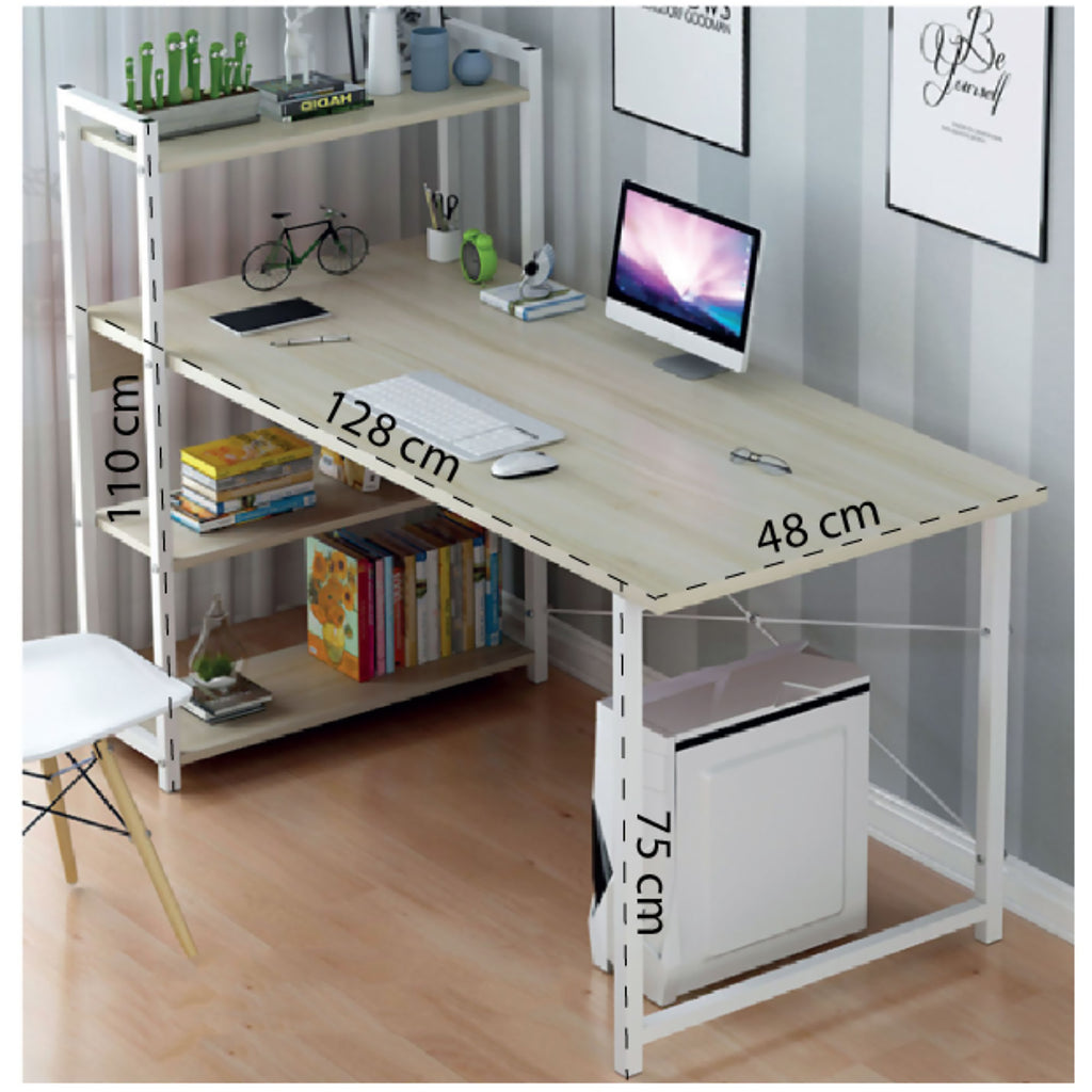 Le bureau Sofia est un poste de travail ou un bureau parfait, avec un design minimal et d'inspiration nordique. Le grand plateau en chêne s'harmonise avec la structure en métal blanc qui le supporte, intégrée au bureau il y a une bibliothèque compacte et spacieuse avec deux étagères inférieures au plan de travail et une supérieure, cela permet de ranger documents et livres en ordre, mais toujours les avoir à portée de main.