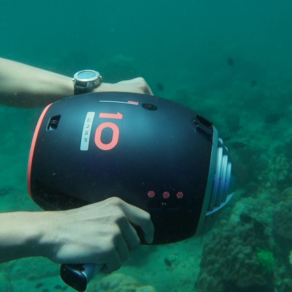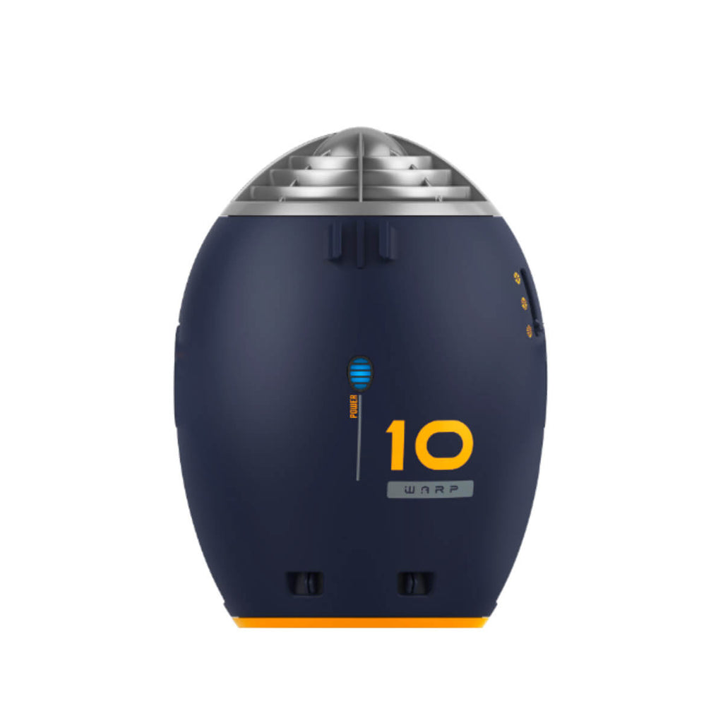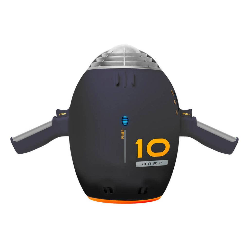 Warp10 est le nouveau Robosea Seascooter super compact, portable, hydrodynamique et amusant, idéal pour voyager grâce aux poignées rétractables et aux très petites dimensions (221*295mm). Il ne pèse que 3,8Kg, batterie Li-Ion 14,8V / 10Ah incluse et peut être transporté comme bagage à main dans un avion (sous réserve de vérifier les conditions spécifiques à chaque compagnie). Les poignées rétractables permettent d'économiser l'espace occupé par le véhicule lorsqu'il n'est pas utilisé et la poignée en silicone confortable permet un transport simple et sans effort. Warp10 peut naviguer jusqu'à une vitesse de 7,2 km/h avec une autonomie maximale de 65 minutes, selon le type d'utilisation