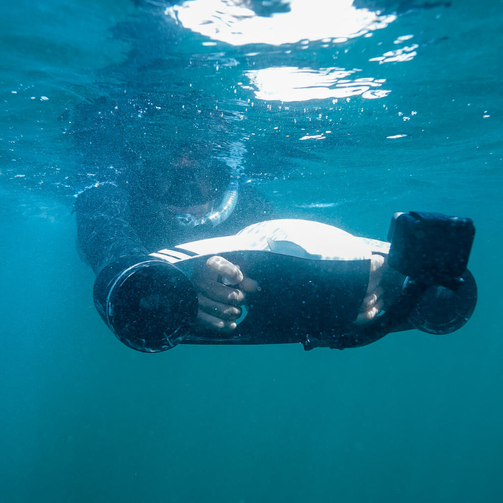 Seaflyer est le DPV de Robosea équipé d'un double propulseur et d'un écran OLED. Avec une batterie Li-Ion 14,8 V/10 Ah qui offre jusqu'à 40 minutes d'utilisation et les deux moteurs électriques qui offrent une vitesse de pointe étonnante allant jusqu'à 7 km/h avec une boîte de vitesses à deux vitesses, le plaisir passe au niveau supérieur. . Disponible en trois couleurs différentes, SeaFlyer est le véhicule idéal pour ceux qui veulent s'amuser dans l'eau et garantir un produit performant et polyvalent, pouvant également être transporté en avion.