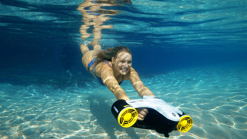 Élégant, compact et facile à utiliser, SEAWING II permet aux utilisateurs de faire de la plongée avec tuba, de nager ou de plonger sous l'eau avec facilité jusqu'à des profondeurs de 30 m .