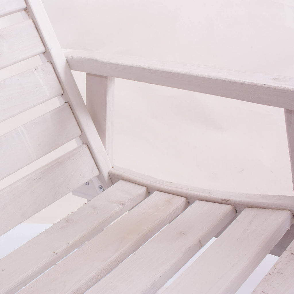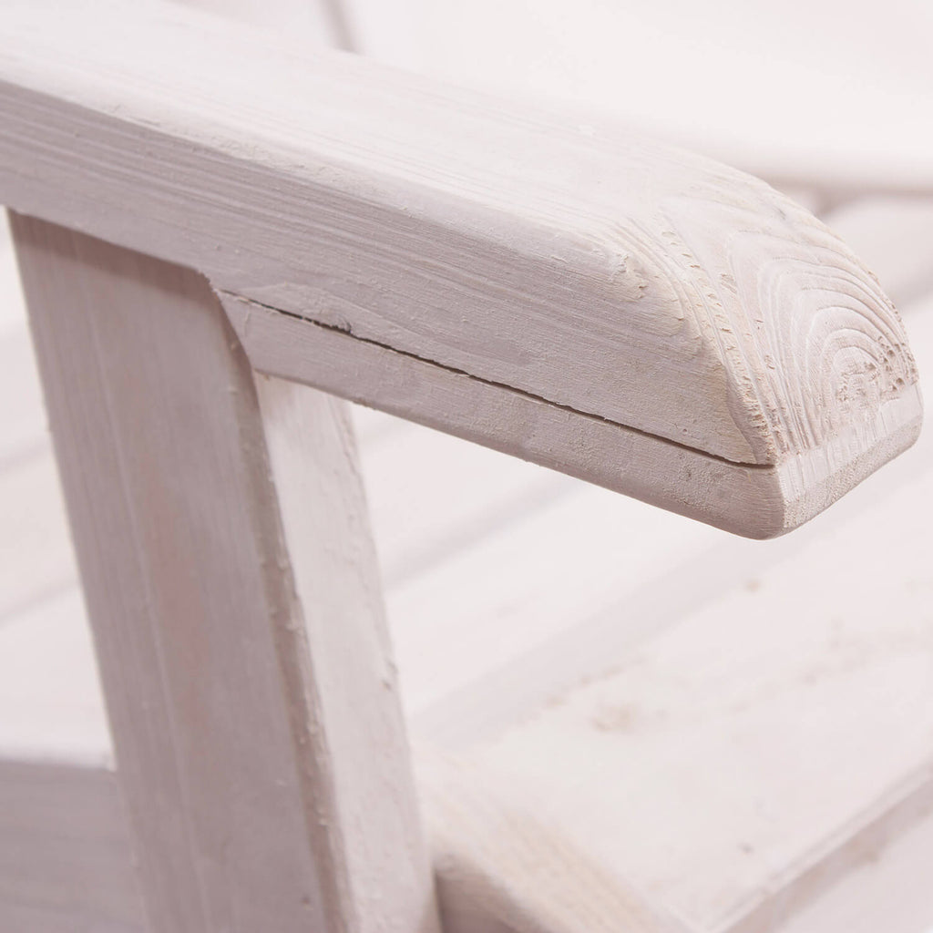 Rocking chair blanc en bois de sapin avec accoudoirs. Convient pour la plage ou le jardin. Le produit est livré assemblé.