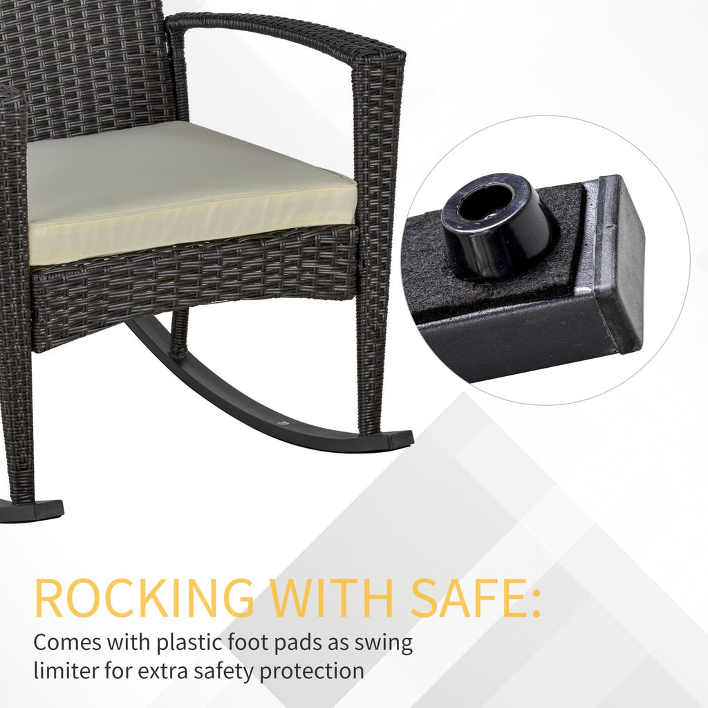 Laissez-vous bercer par le fauteuil à bascule tout en profitant de vos espaces extérieurs. Il a un cadre en métal solide recouvert de rotin PE, ce qui assure la stabilité et la résistance aux intempéries. Cette chaise berçante en rotin possède une large assise avec un coussin rembourré, un dossier et des accoudoirs qui offrent un soutien optimal pour votre détente. Emmenez-le tout de suite dans votre jardin ou votre terrasse !
