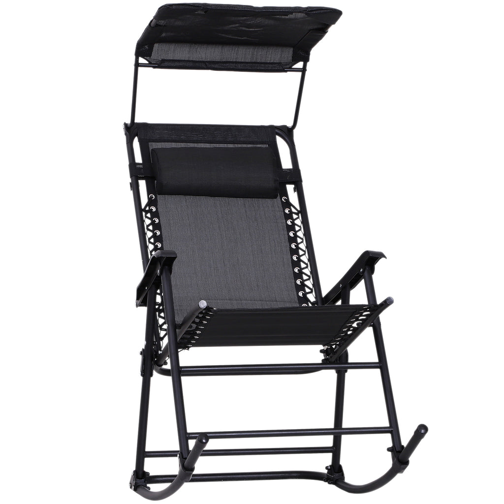 Chaise à bascule de jardin d'extérieur avec auvent noir 105x64x125 cm