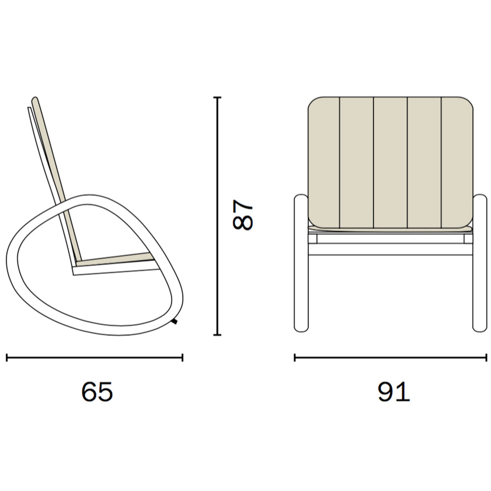 Chaise à bascule d'extérieur rembourrée en aluminium Ø40x20/28x18cm Vorghini Poli Ecru