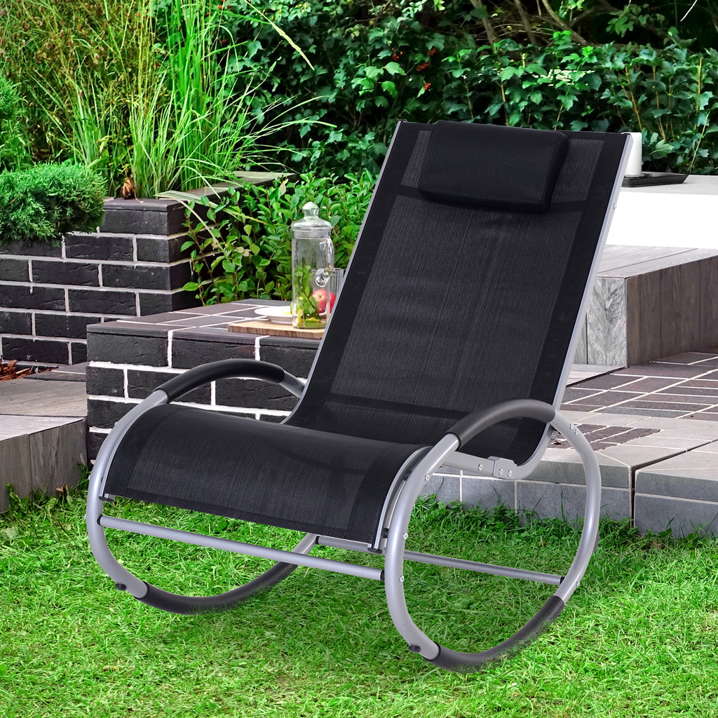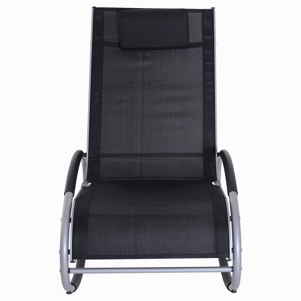 Chaise à bascule de jardin étanche en aluminium noir 120x61x88 cm