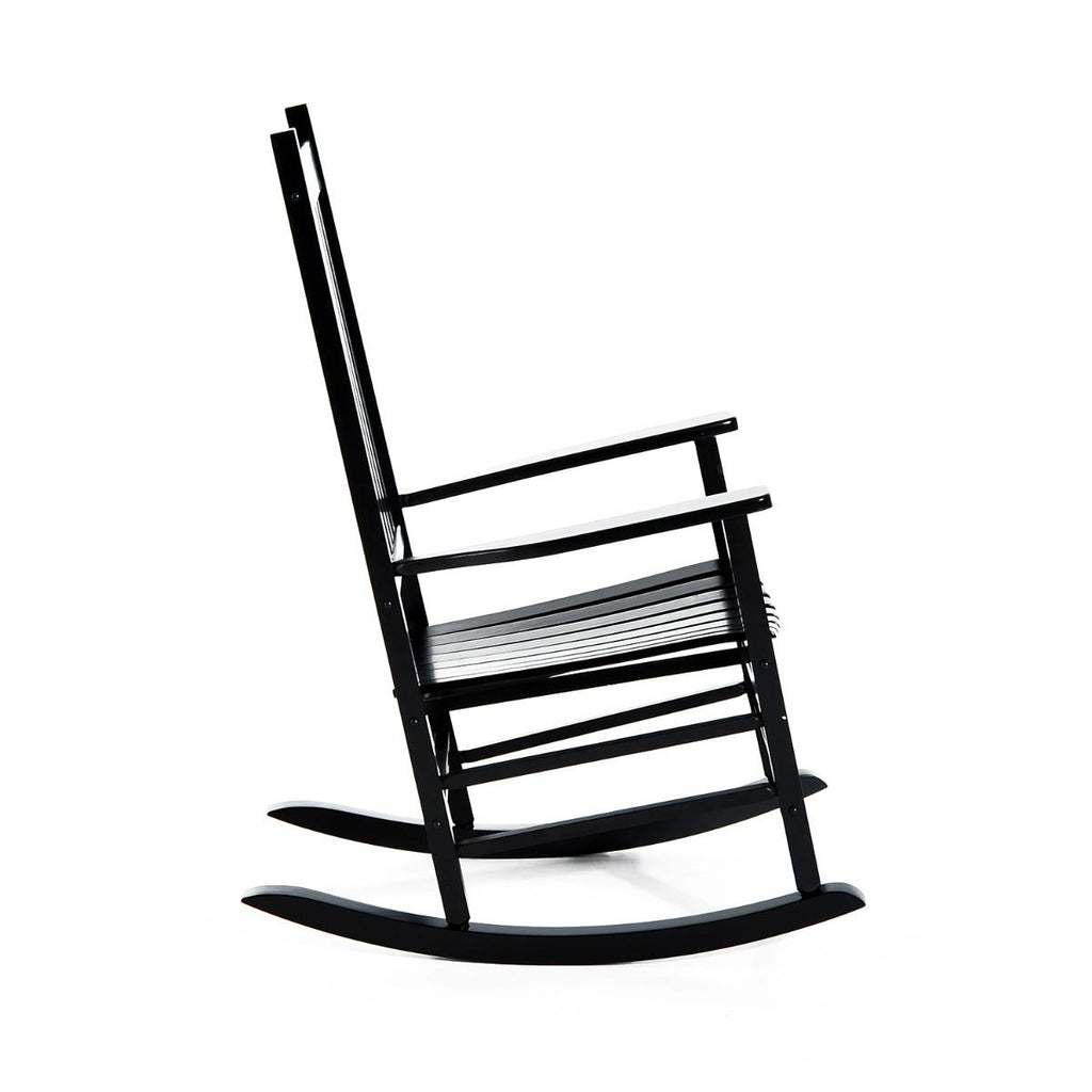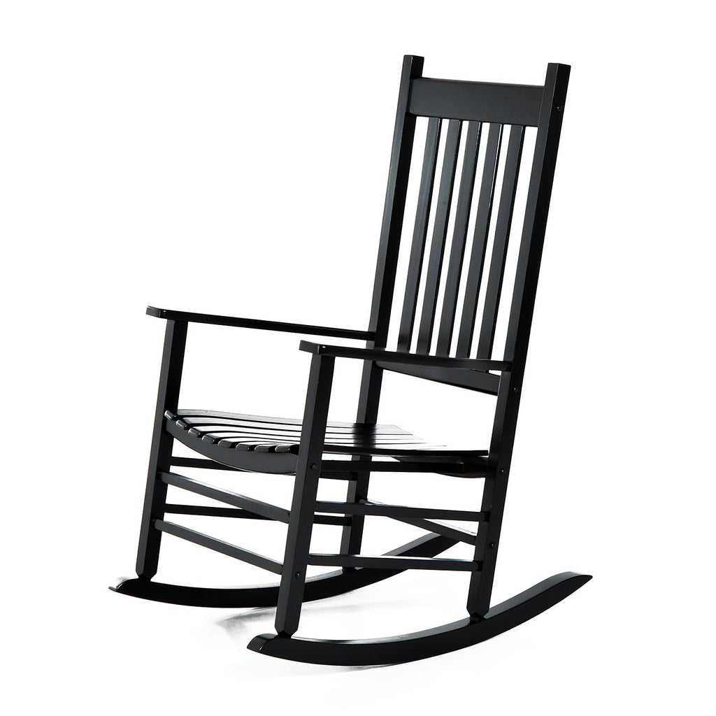 Plongez dans le charme « à l'ancienne » avec ce fauteuil à bascule. Construit en bois de peuplier et laqué de peinture noire, il présente une surface lisse et uniforme, résistante aux intempéries. Grâce au dossier haut et à l'assise large, il a un design ergonomique, parfait pour se laisser emporter dans le monde de la détente.