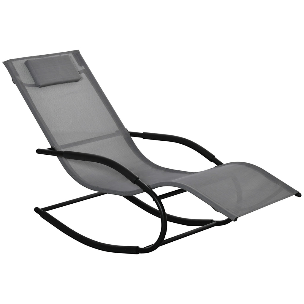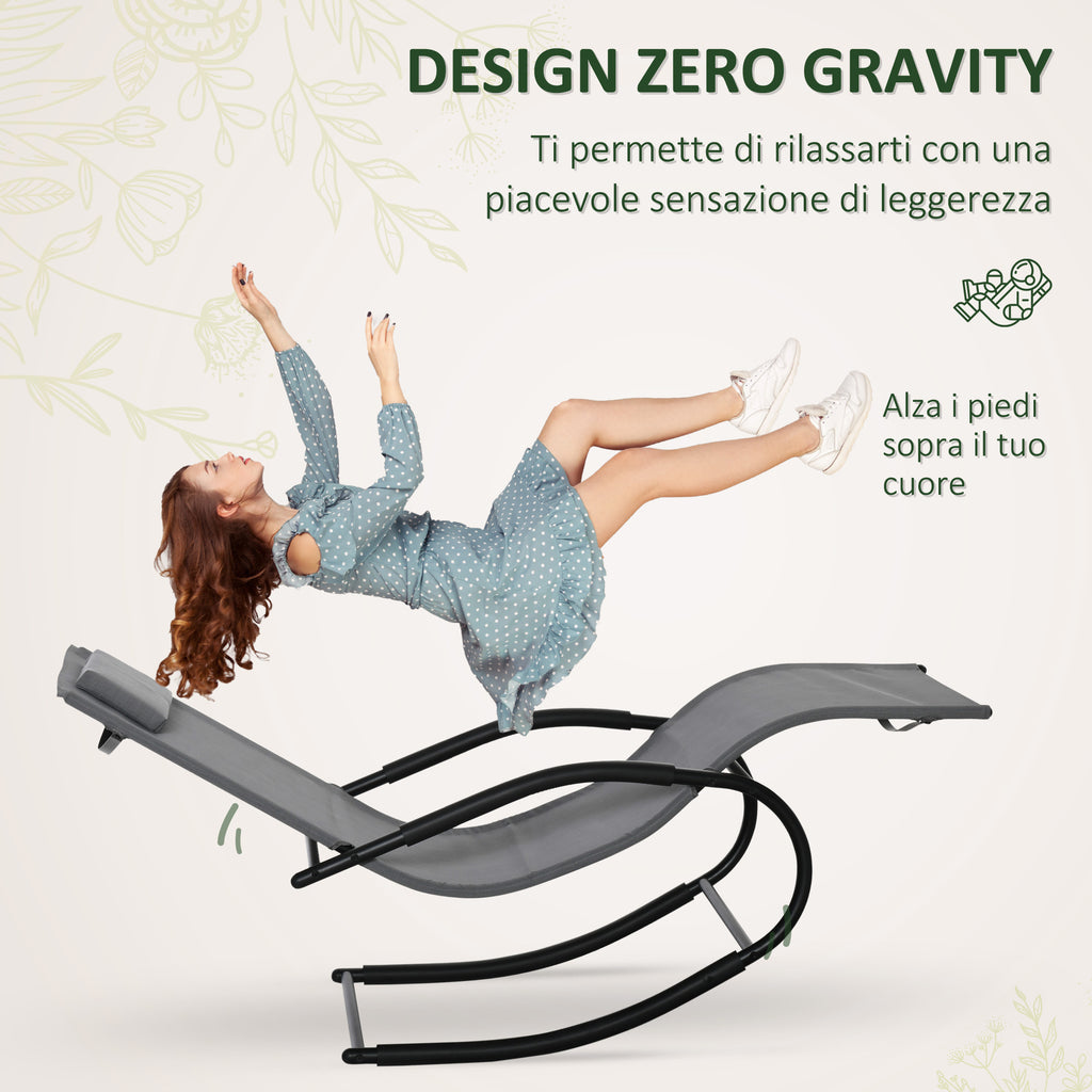 Rocking Chair de jardin Zero Gravity 63x160x88 cm en métal et gris Texteline