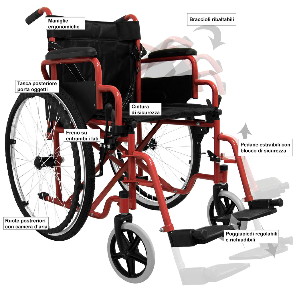 Caractéristiques Techniques Fauteuil Roulant Pliant Autopropulsé Rouge Acier Rizzetti