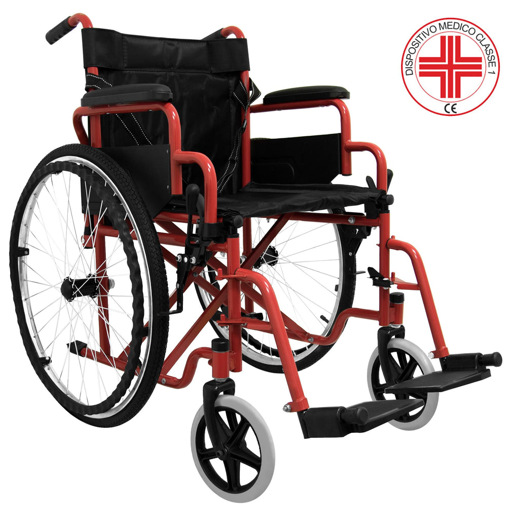 Fauteuil roulant pliant autopropulsé en acier rouge Rizzetti