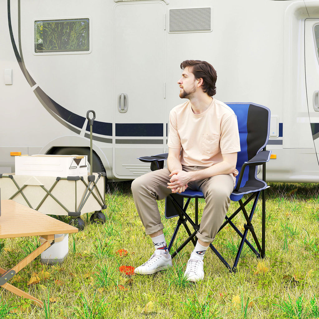 Sedia da Campeggio Pieghevole con Tasca e Portabicchieri Blu
