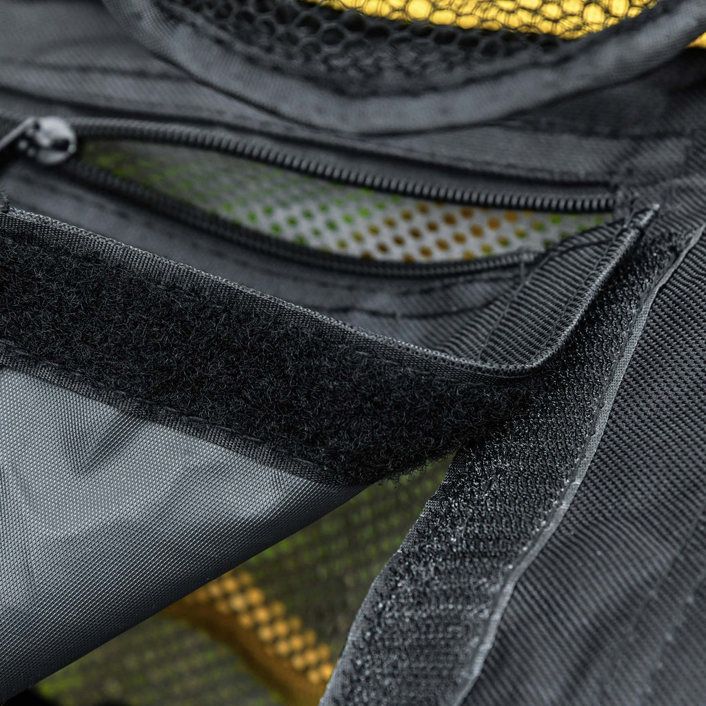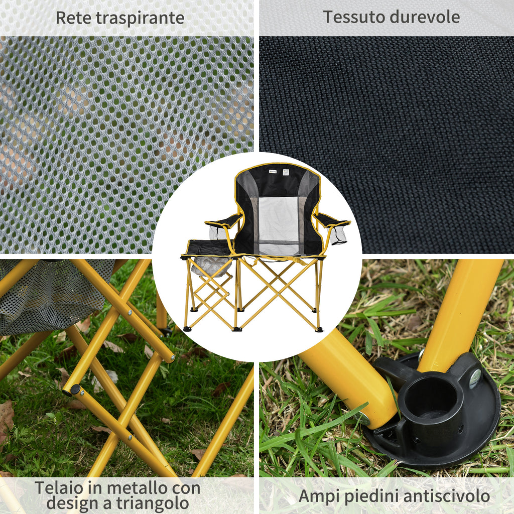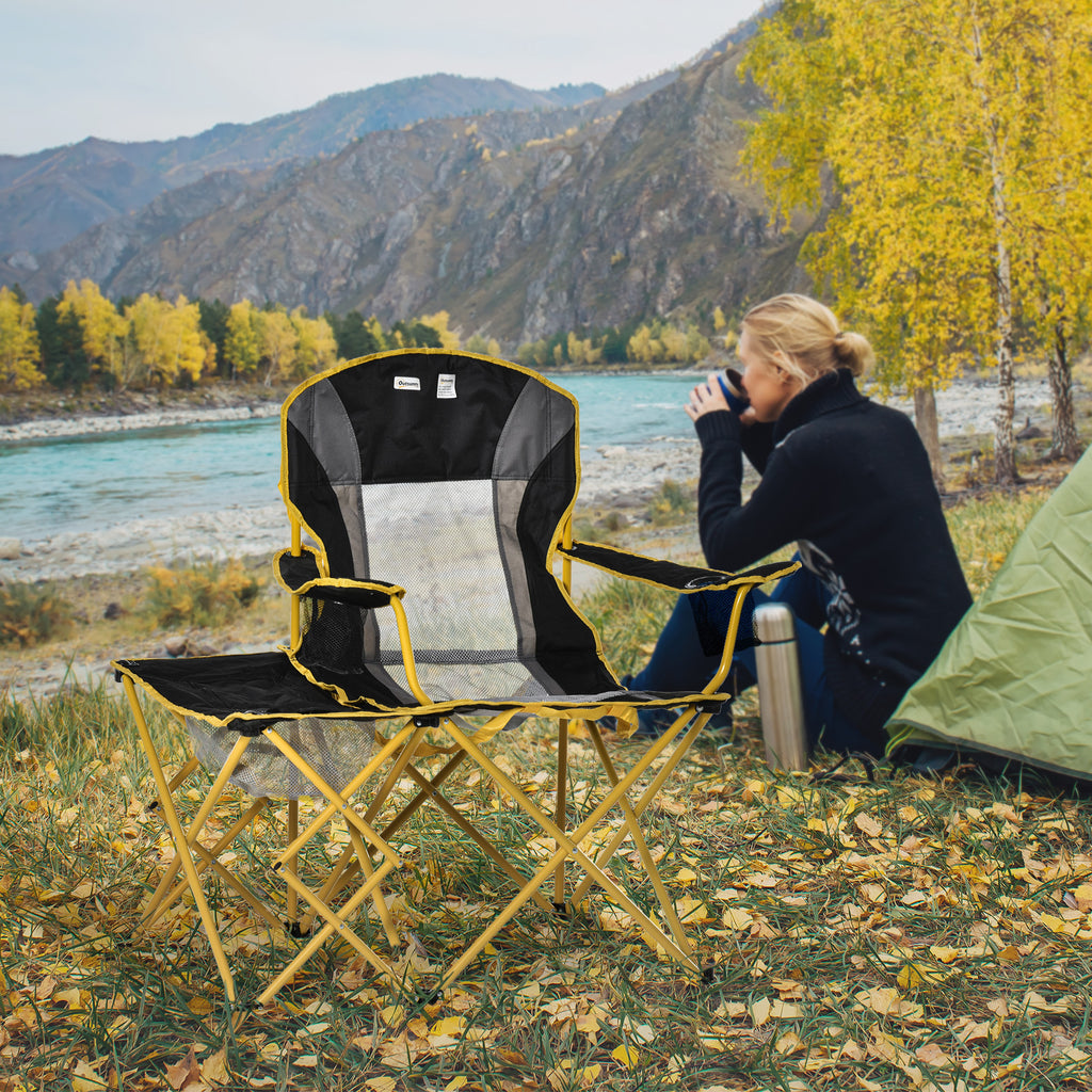 Chaise de camping pliante en métal et tissu noir et jaune