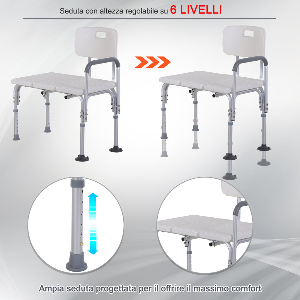 Chaise de Douche Antidérapante Réglable en Hauteur 6 Niveaux 79x57x80-92 cm Comfy