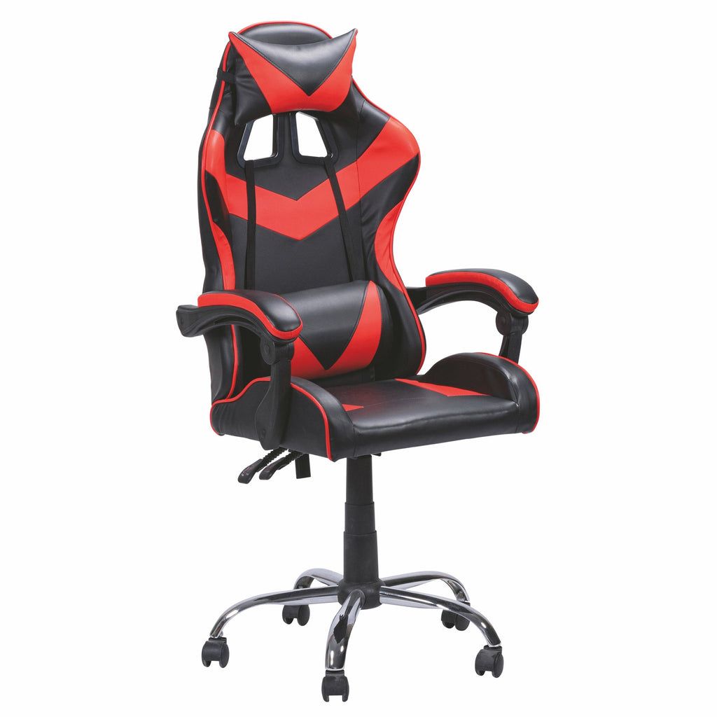 Chaise Gaming 61x56x123 cm en Similicuir Noir et Rouge