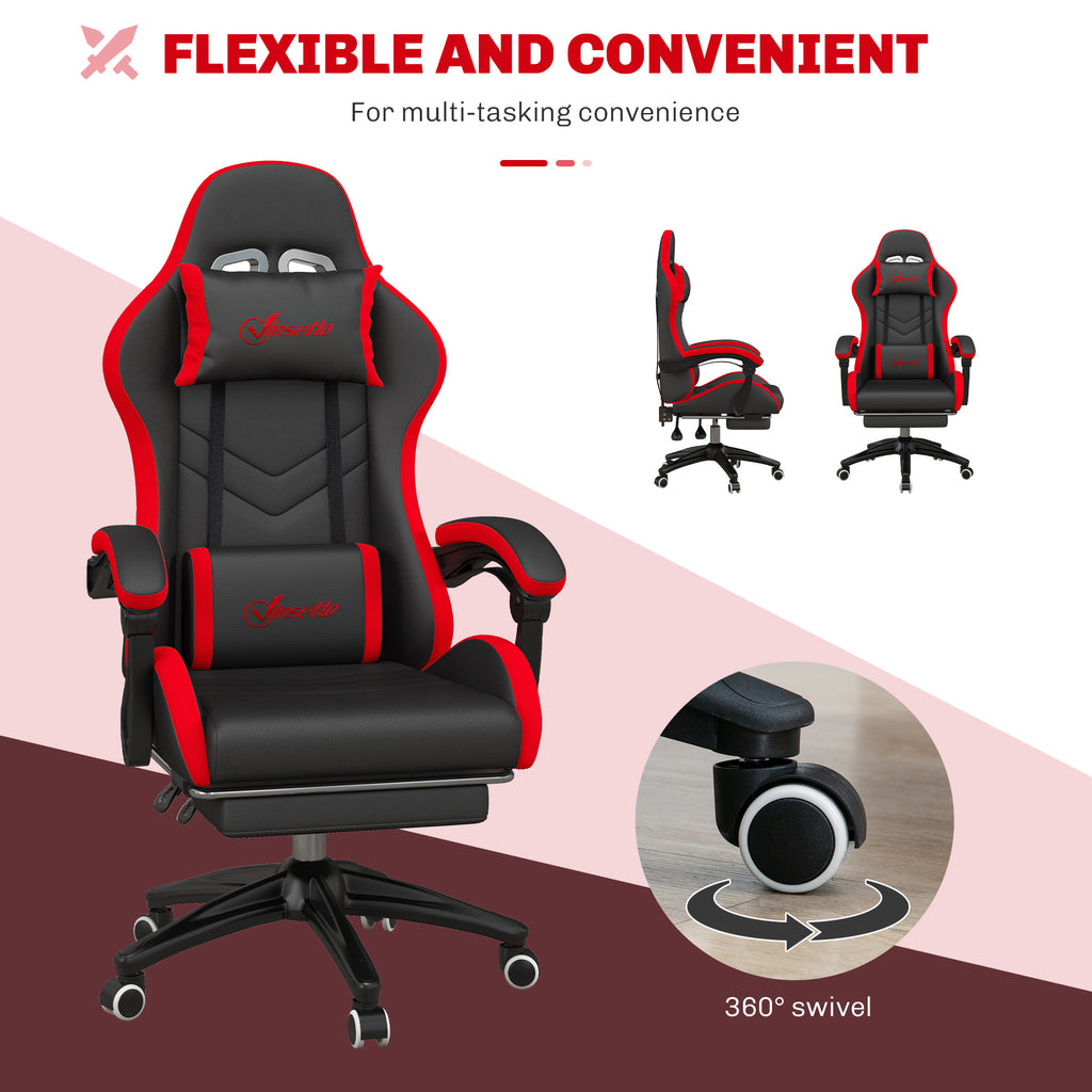 Sedia da Gaming Altezza Regolabile e Schienale Reclinabile 65x65x121-129 cm Nero e Rosso