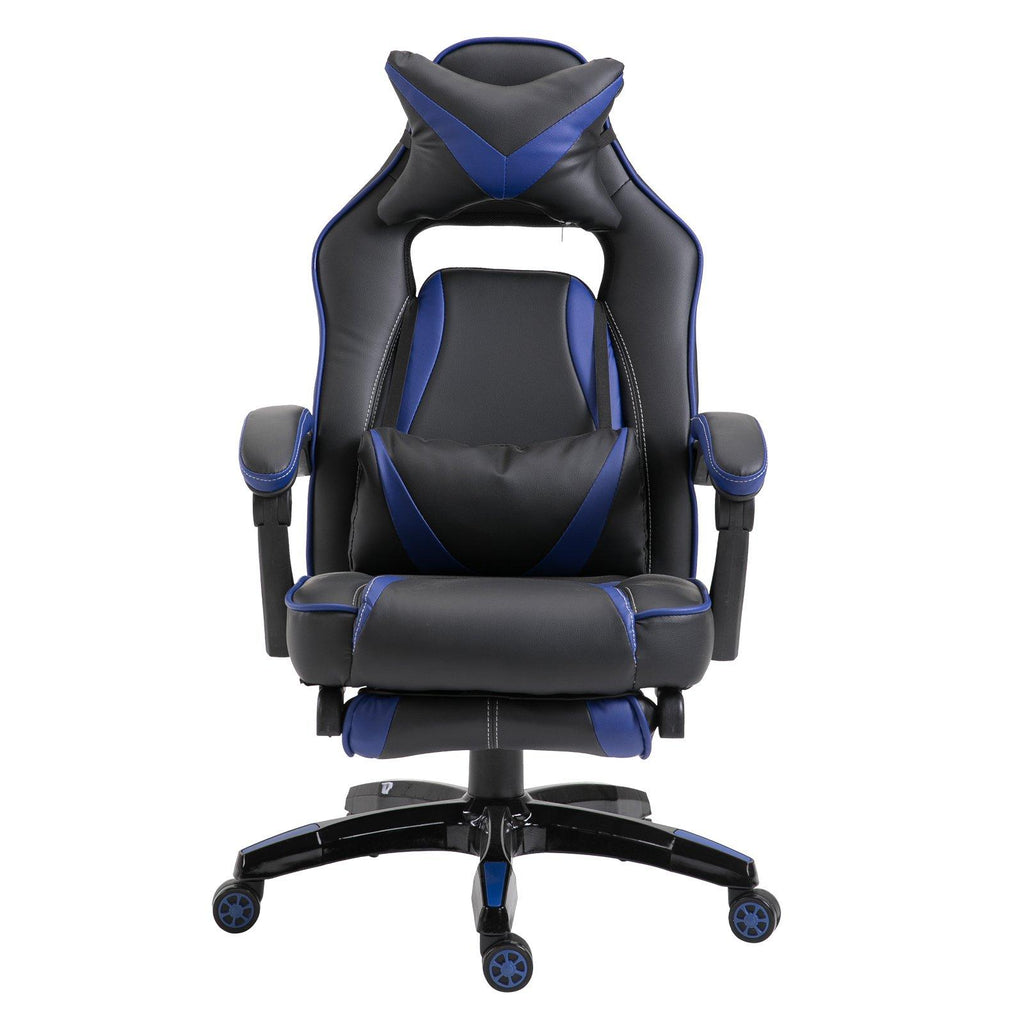 Chaise de jeu avec roulettes en similicuir bleu et noir