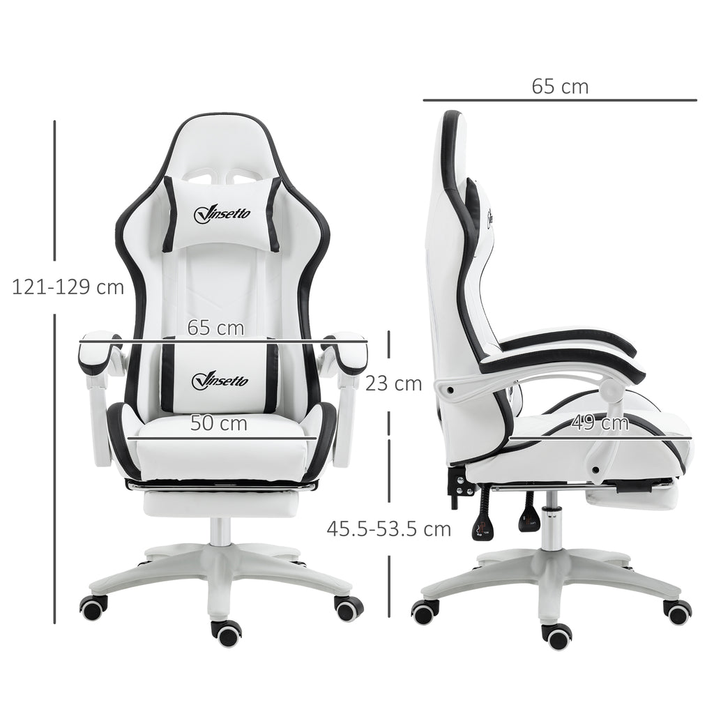 Sedia da Gaming con Schienale Reclinabile 65x65x121-129 cm in Finta Pelle PU Bianco e Nero