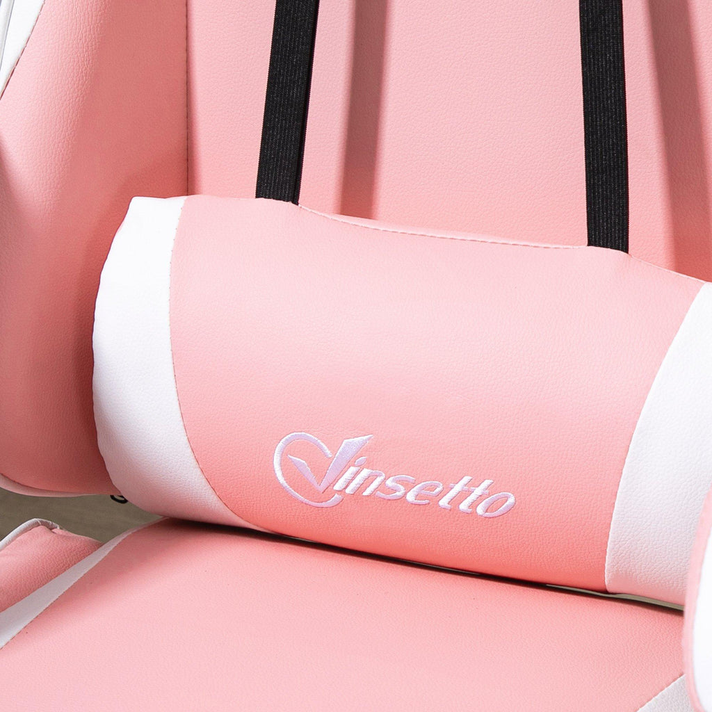 Chaise gamer ergonomique 63x67x119-127 cm en simili cuir rose