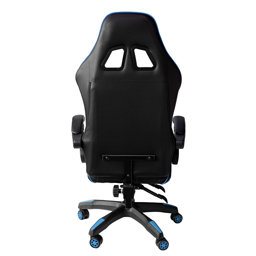 Chaise gamer ergonomique 64x53x122-133 cm avec repose-pieds en simili cuir bleu