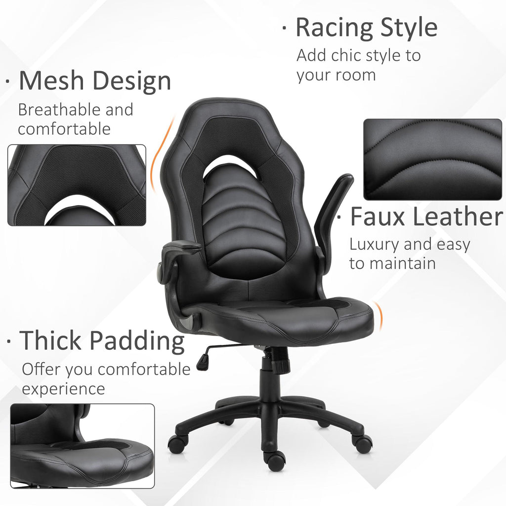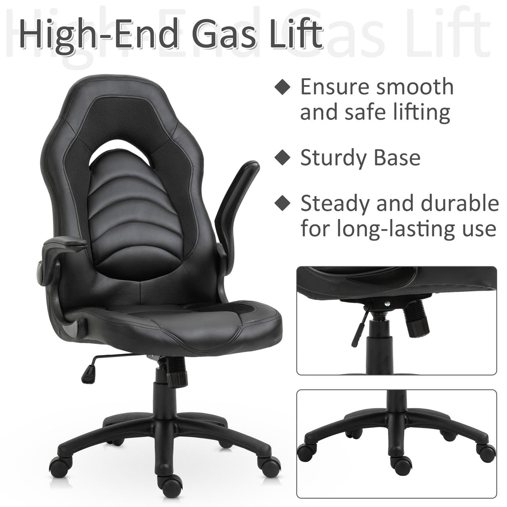 Chaise Gaming Ergonomique 66,5x51x115-125 cm en Simili Cuir Noir