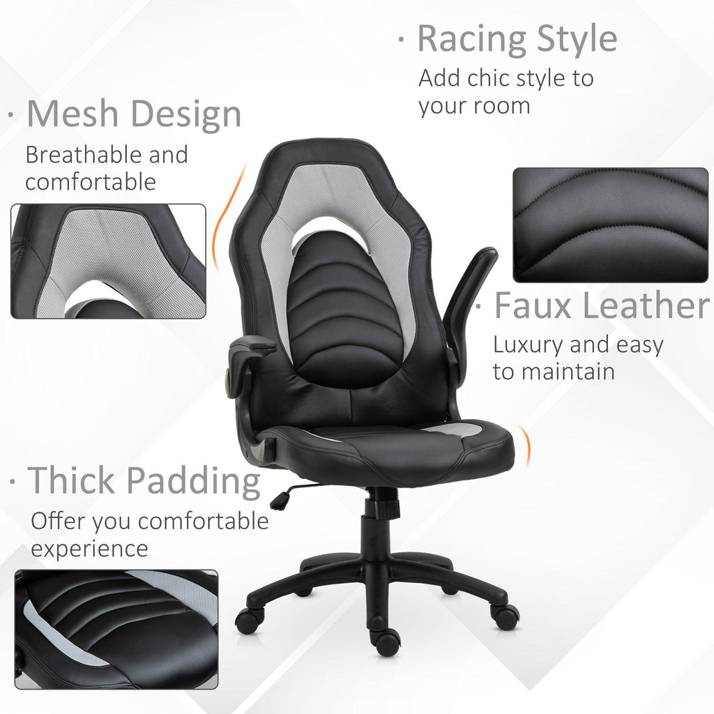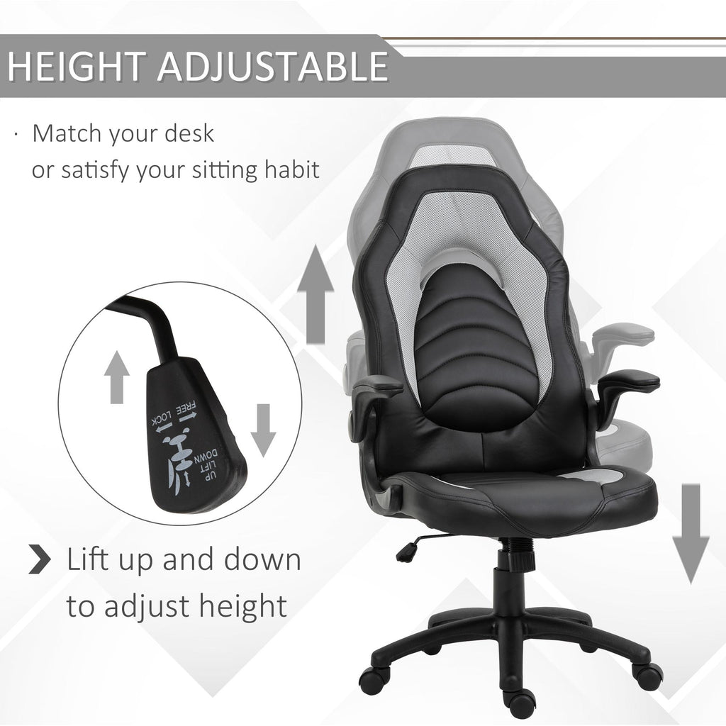 Chaise Gaming Ergonomique 66,5x51x115-125 cm en Simili Cuir Noir et Gris