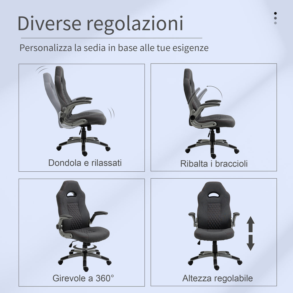 Chaise Gaming Ergonomique 70,5x70x113-121 en Tissu Gris