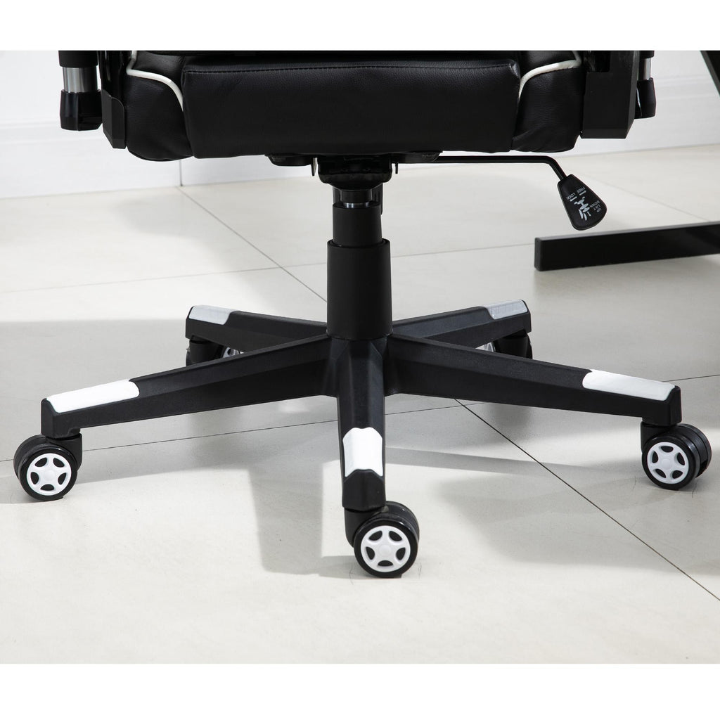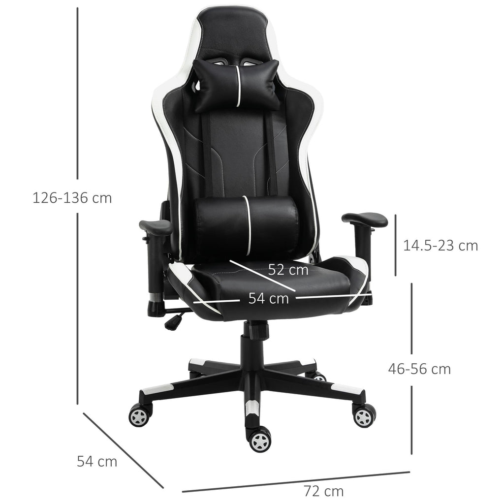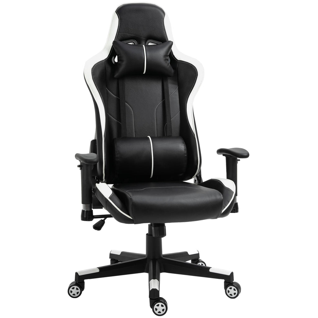 Chaise Gaming Ergonomique 72x54x126-136 cm en PVC Noir et Blanc