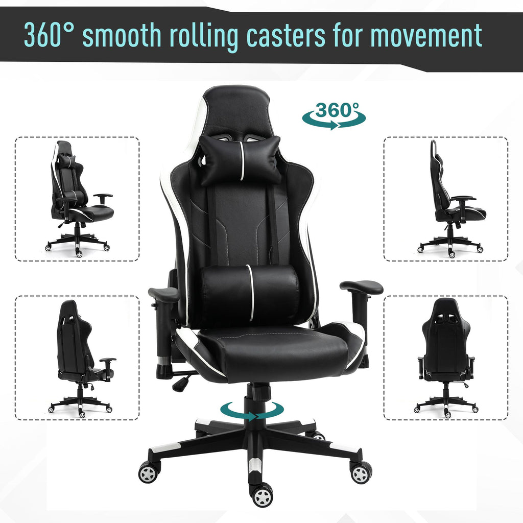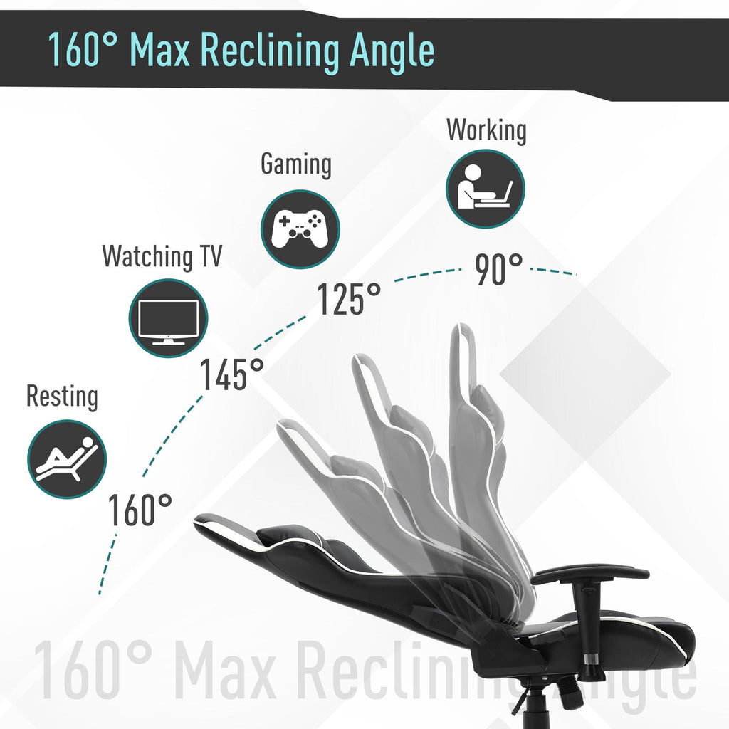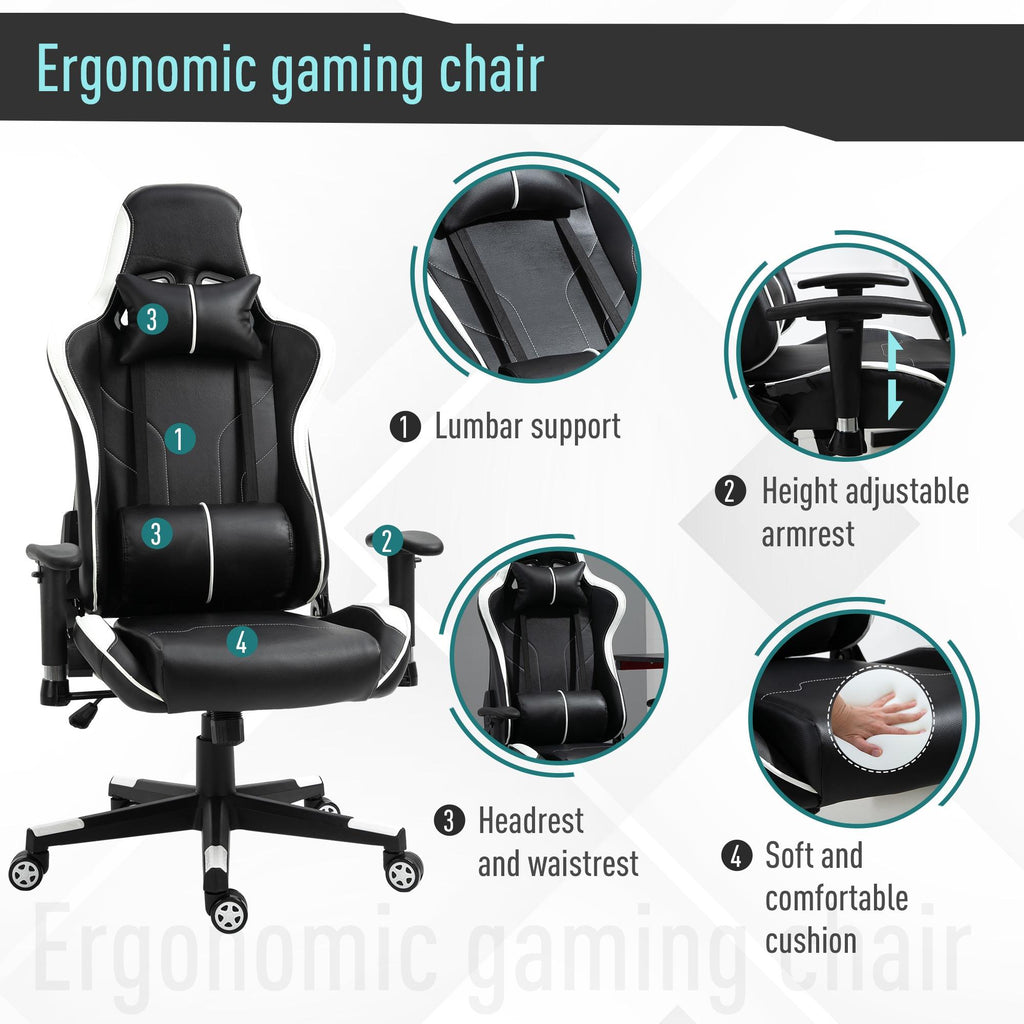Chaise Gaming Ergonomique 72x54x126-136 cm en PVC Noir et Blanc