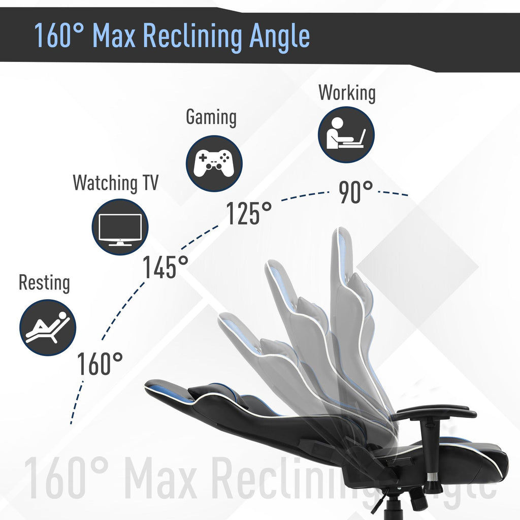 Chaise Gaming Ergonomique 72x54x126-136 cm en PVC Noir et Bleu