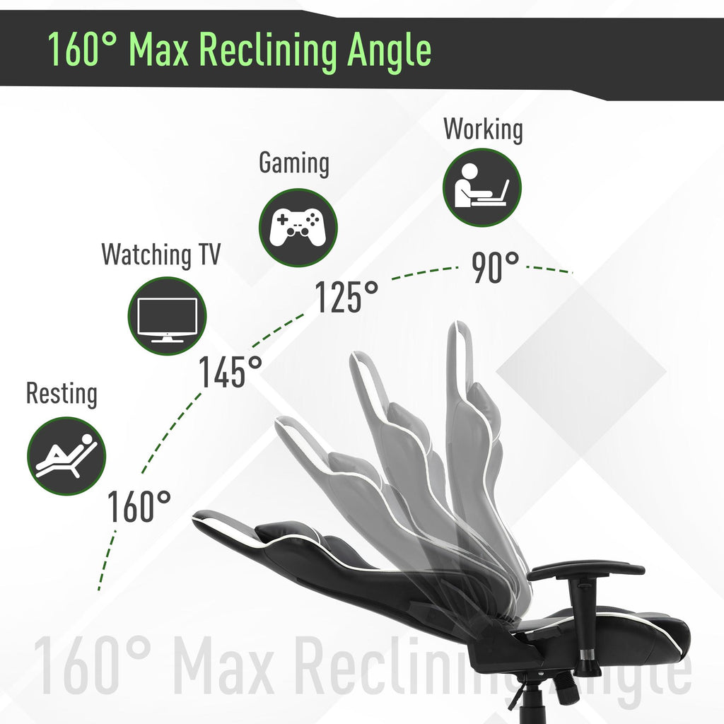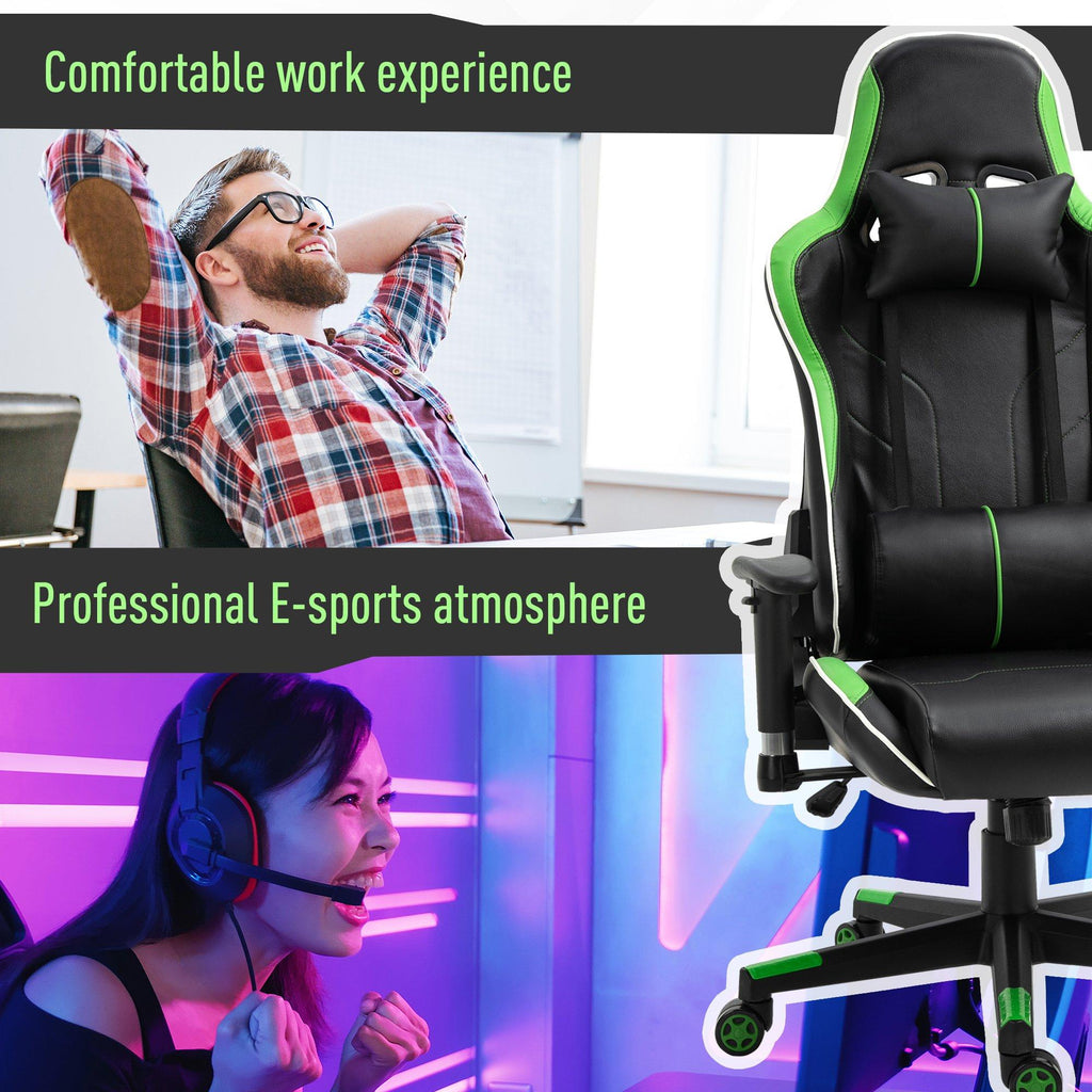 Chaise Gaming Ergonomique 72x54x126-136 cm en PVC Noir et Vert