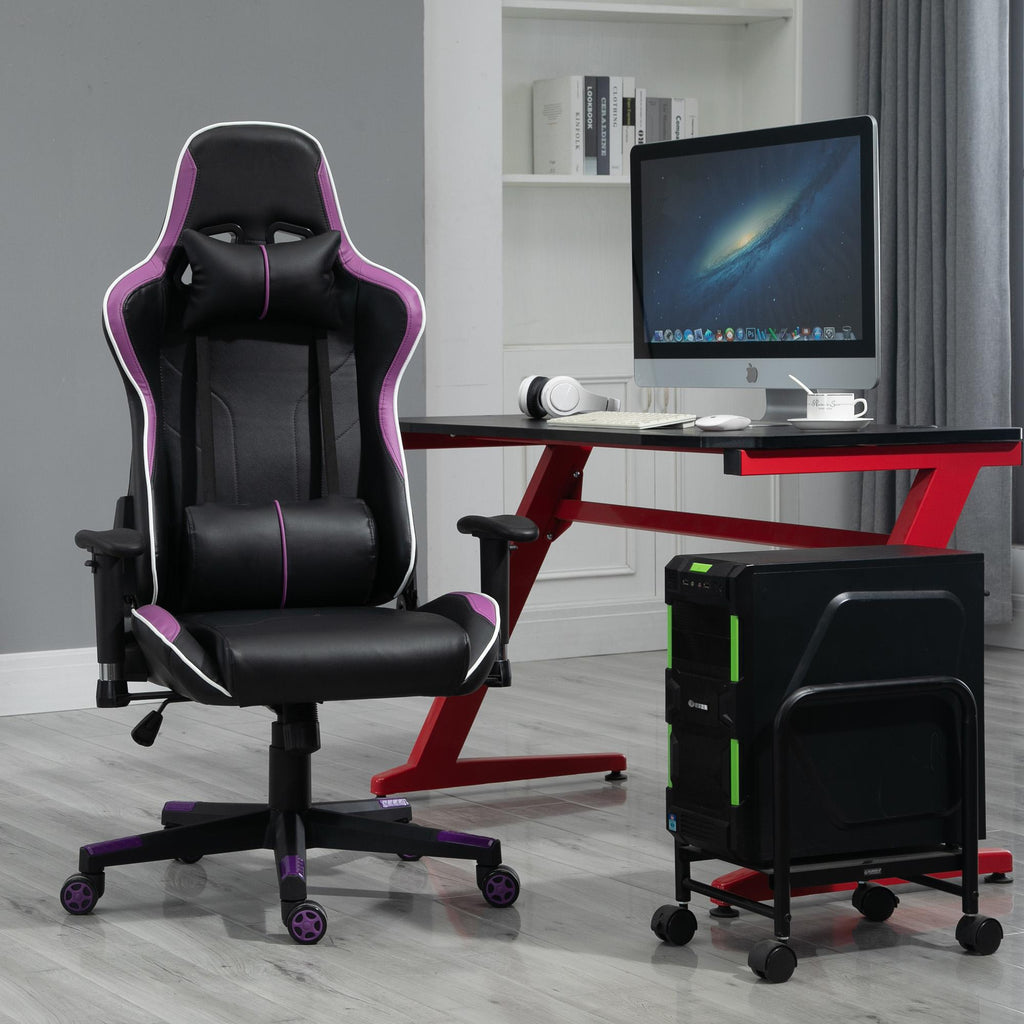 Chaise gaming ergonomique 72x54x126-136 cm en PVC noir et violet
