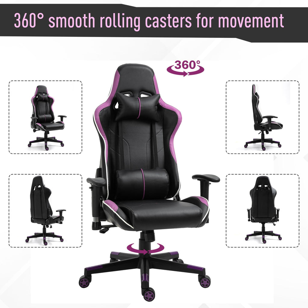 Chaise Gaming Ergonomique 72x54x126-136 cm en PVC Noir et Violet