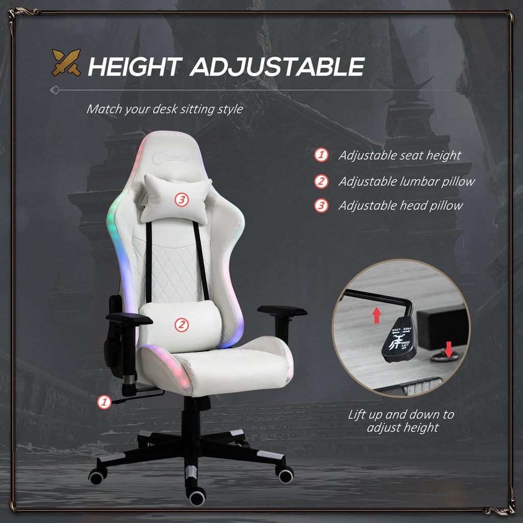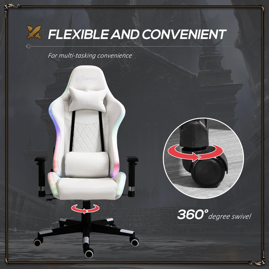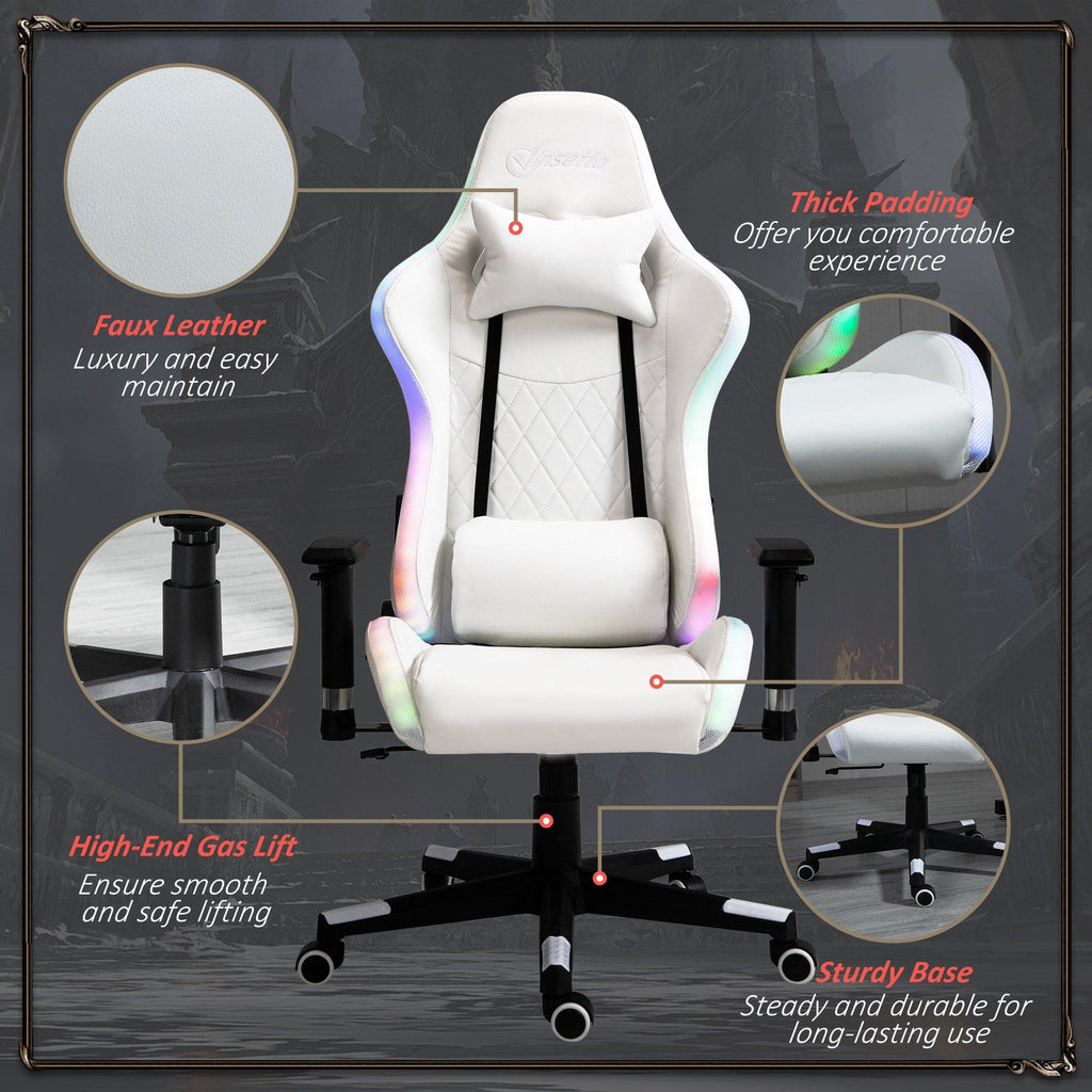 Chaise de jeu ergonomique avec lumières LED en similicuir blanc
