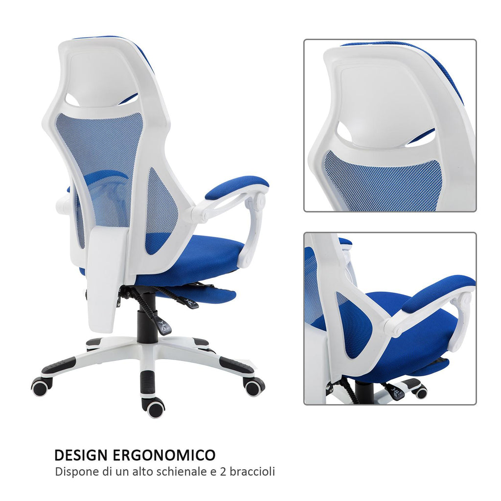 Chaise de jeu ergonomique pivotante et inclinable avec repose-pieds Bleu