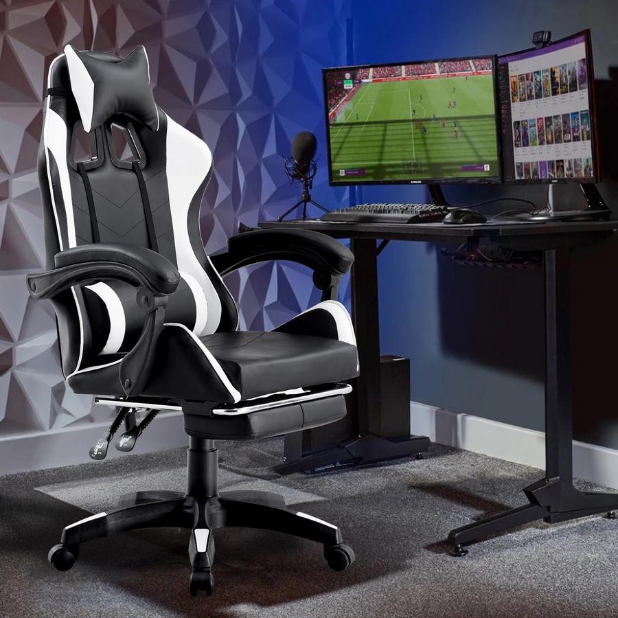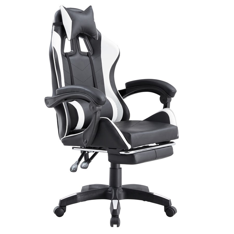 Ready to Start? Scopri la Sedia Gaming Bianca e Nera Adatta a giovani gamers, così come a chi semplicemente desidera una poltrona da ufficio ergonomica, la sedia gaming permette lunhe sessioni al PC o alla scrivania senza alcun problema di postura e comodità. La poltrona racing, ora online anche in questa versione in bianco e nero, è reclinabile e dotata di comodo poggiapiedi: tutto questo, assieme alla forma ergonomica dello schienale, fa della sedia da gamer una comoda poltrona da scrivania. La Sedia da ufficio bianca e nera ha aspetto aggressivo e design dinamico, adatto ad appassionato di videogames, ma i colori, il mix di bianco e nero la rendono perfetta anche come poltrona da scrivania per la cameretta o, perchè no, come vera e propria poltrona ufficio. Lasciati avvolgere dalle forme da racing della poltrona gaming, e vivi al meglio le tue ore al pc, senza sentire la stanchezza.