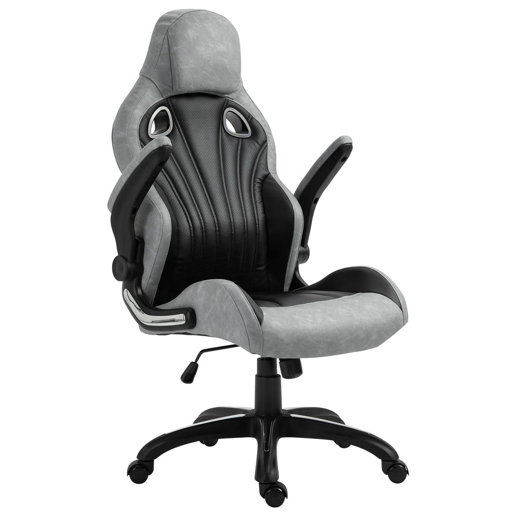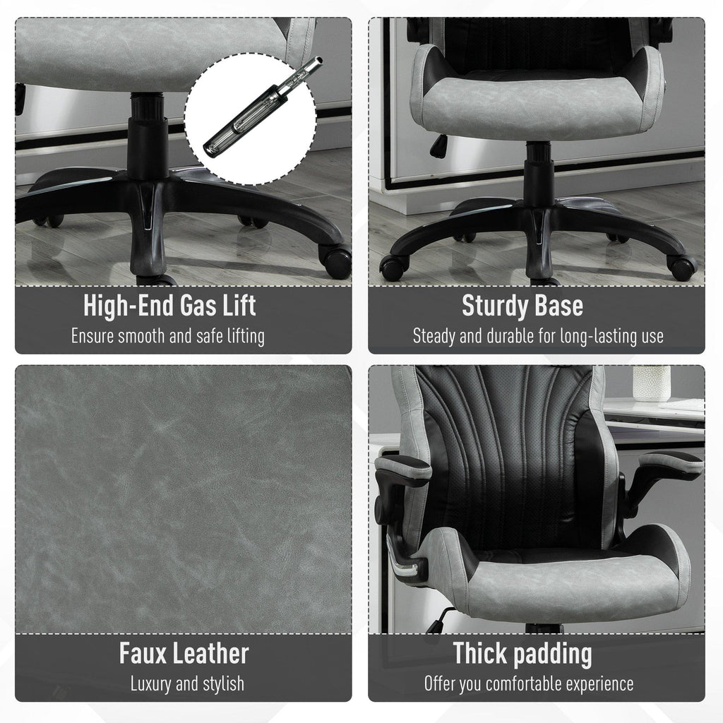 Fauteuil de jeu inclinable et pivotant en similicuir noir et gris