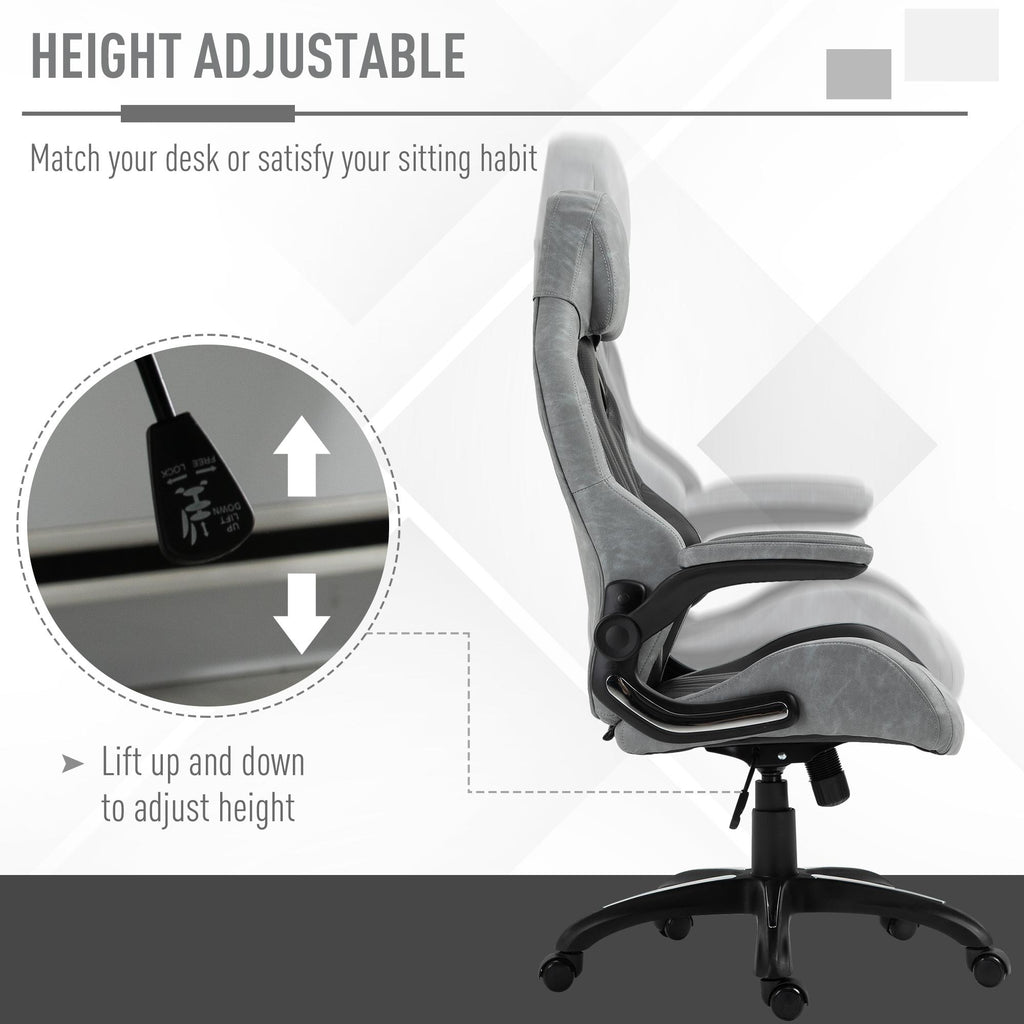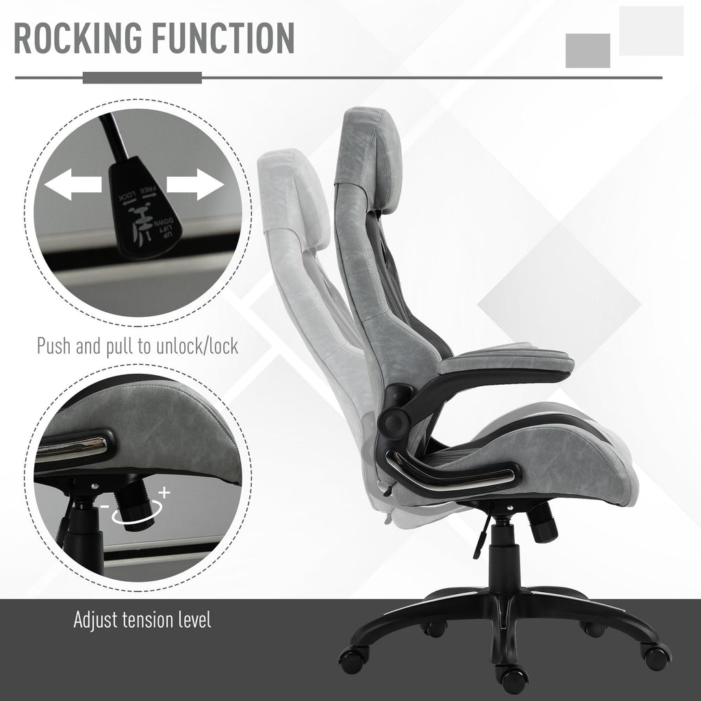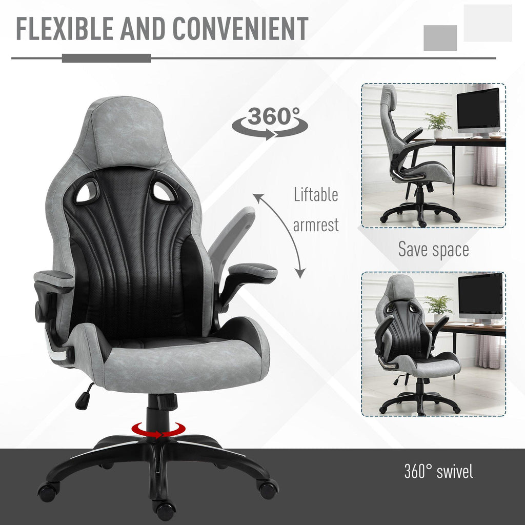 Chaise de jeu inclinable et pivotante en simili cuir noir et gris