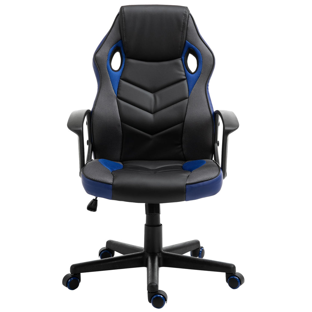 Chaise de jeu inclinable et pivotante en similicuir noir et bleu
