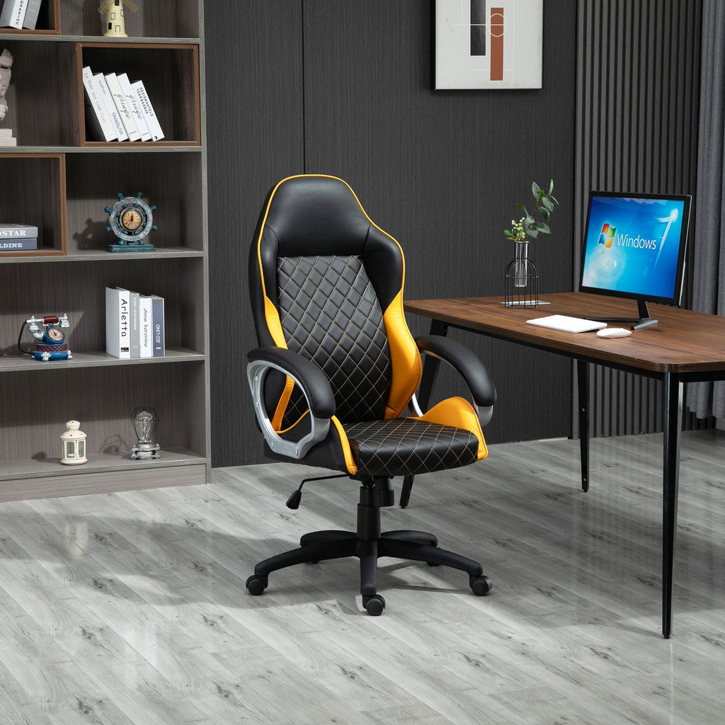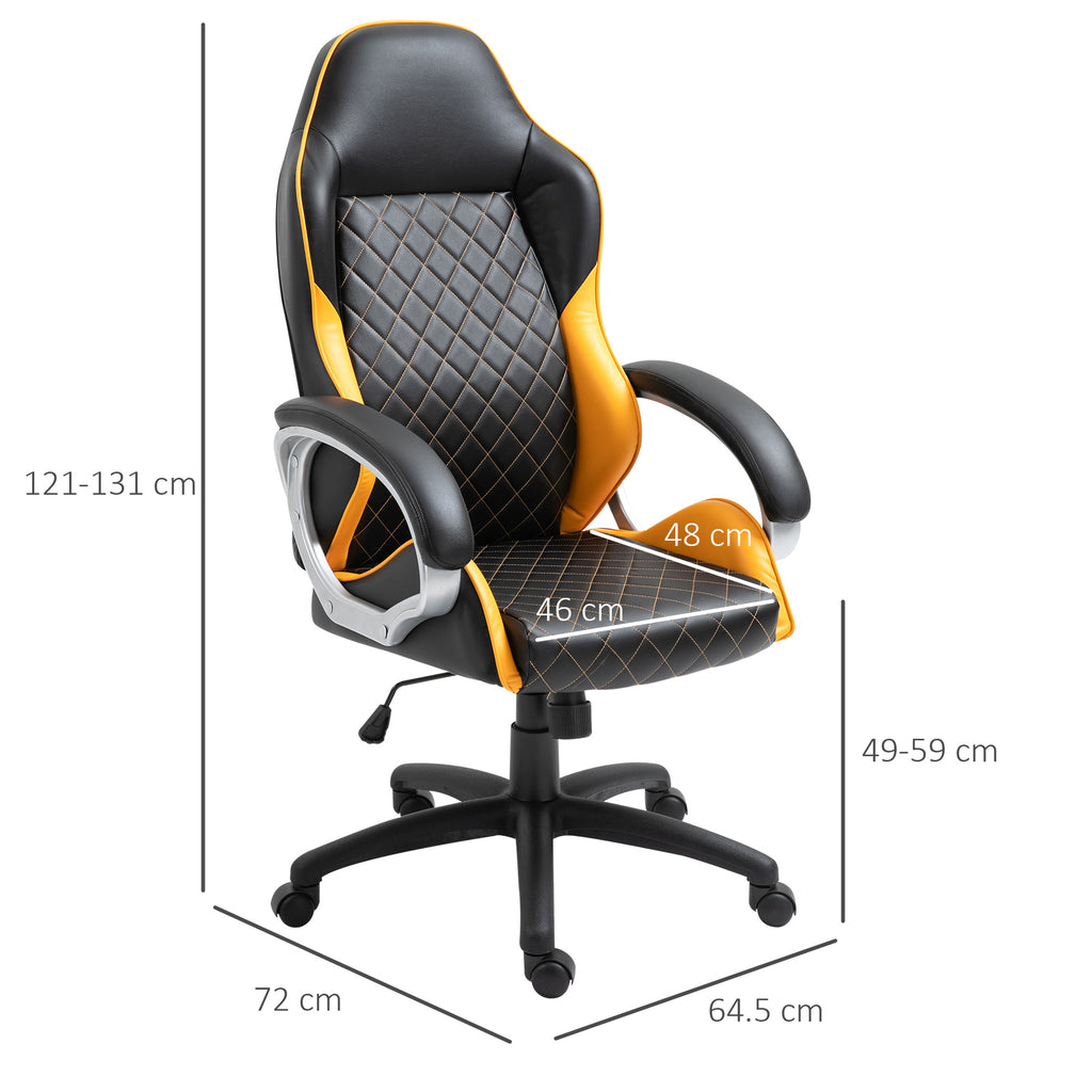 Fauteuil de jeu inclinable et pivotant en similicuir noir et orange