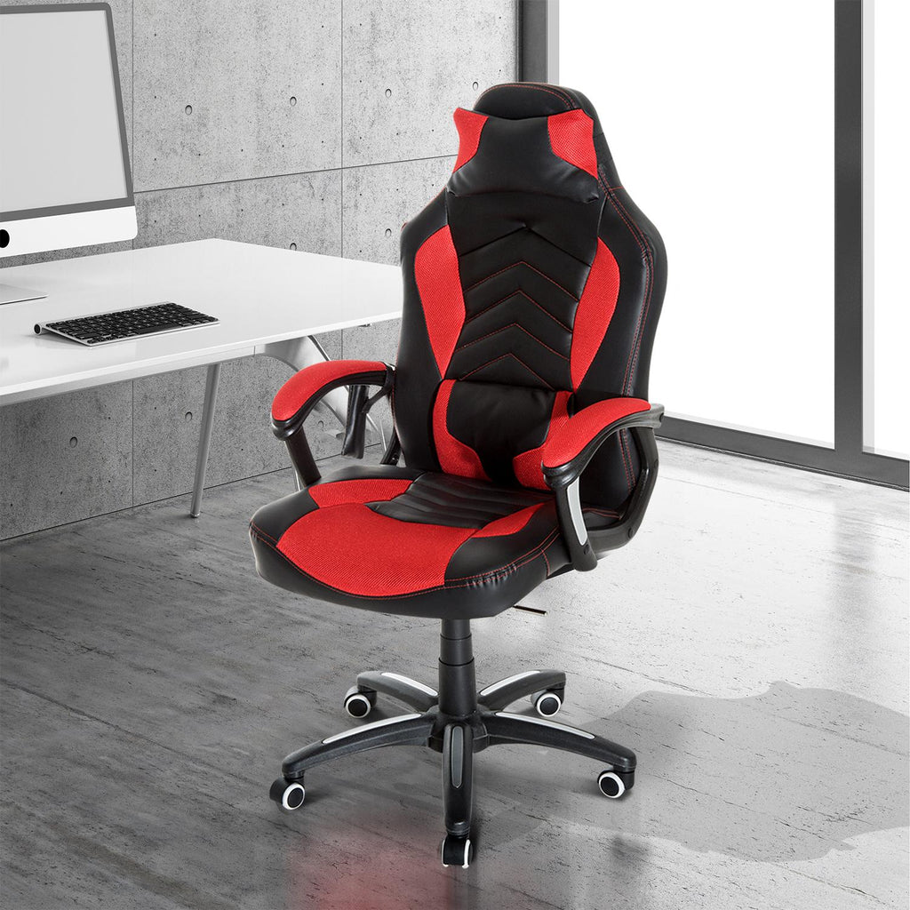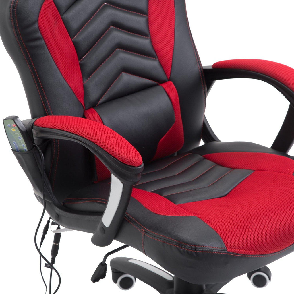 Chaise de jeu massante et chauffante rouge et noire 68x69x108-117 cm