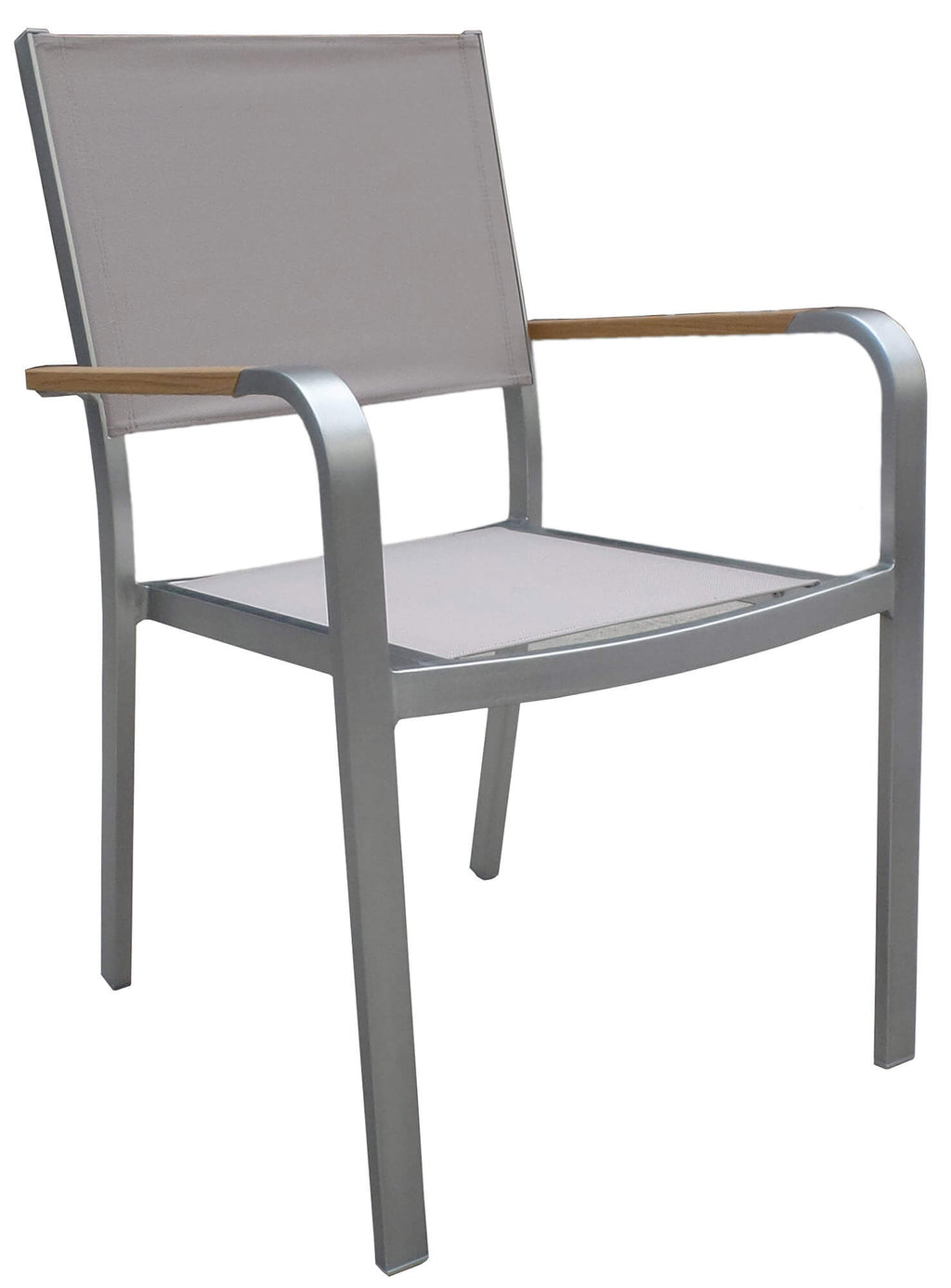 - Matériau : Structure en aluminium satiné avec accoudoirs en bois de résine couleur teck