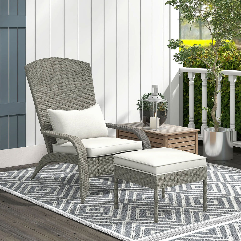 Sedia da Giardino con Poggiapiedi e Cuscini Imbottiti 64x82x89 cm in Rattan e Acciaio Grigio e Crema